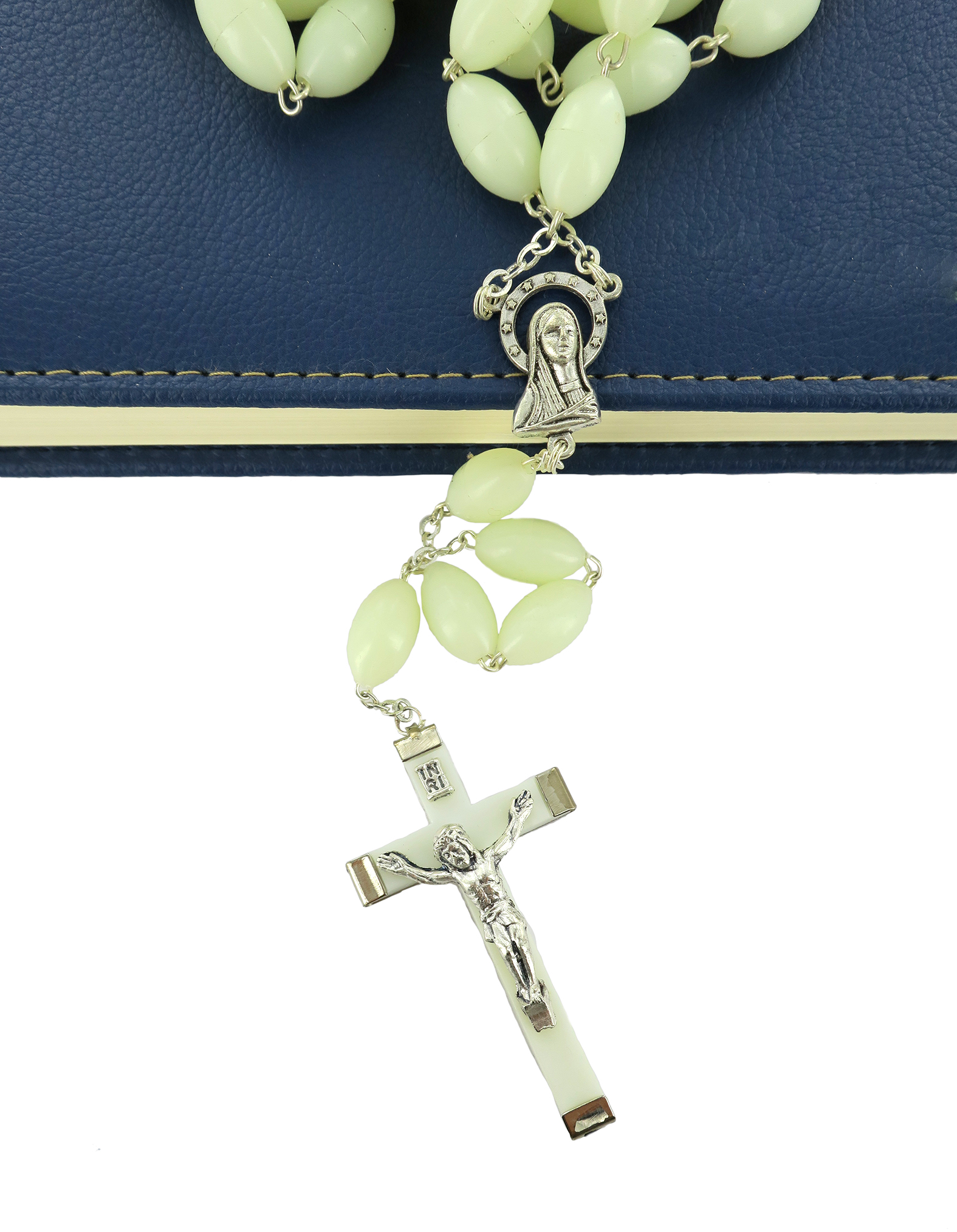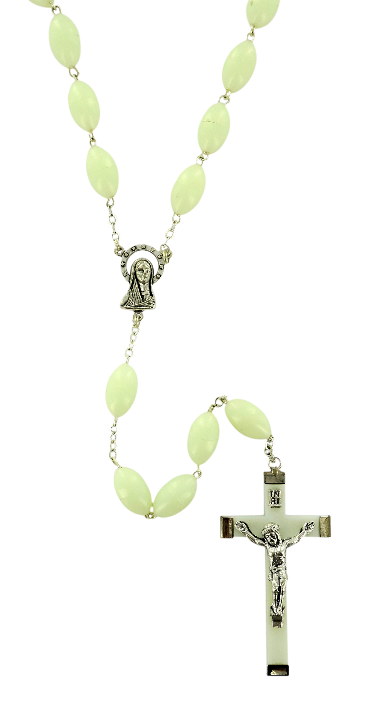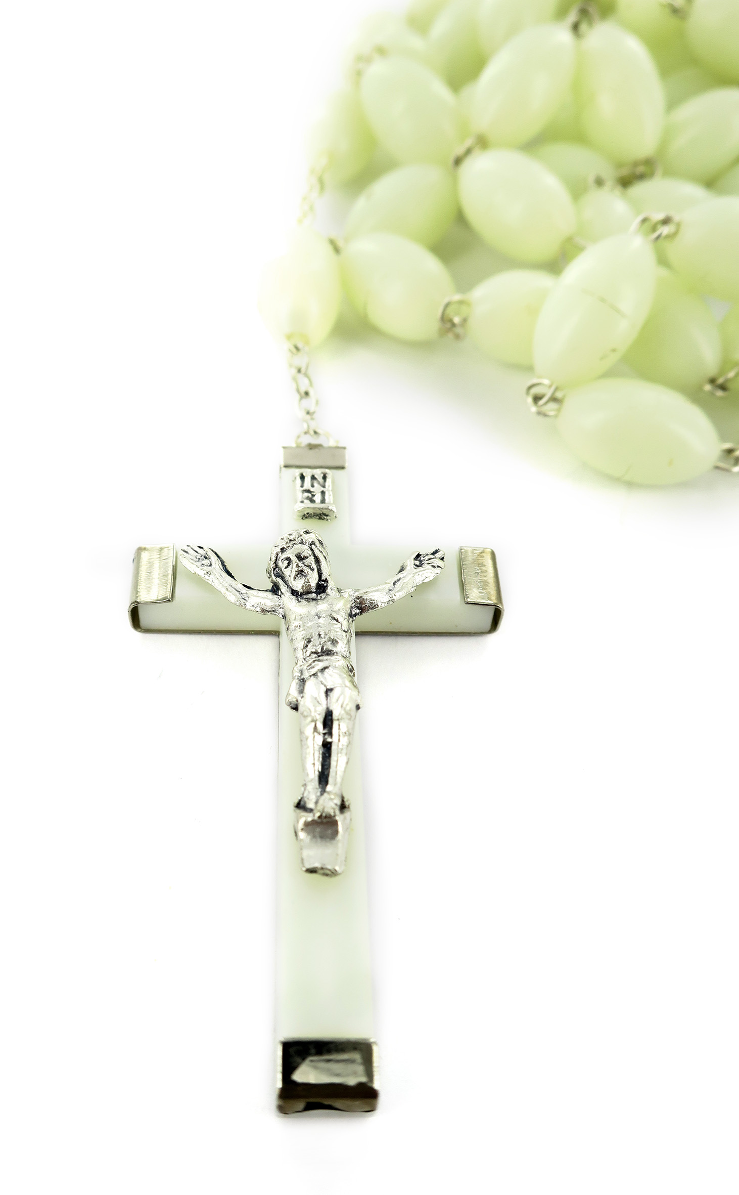 Rosario fosforescente con grani da Ø 9 mm e legatura in ottone