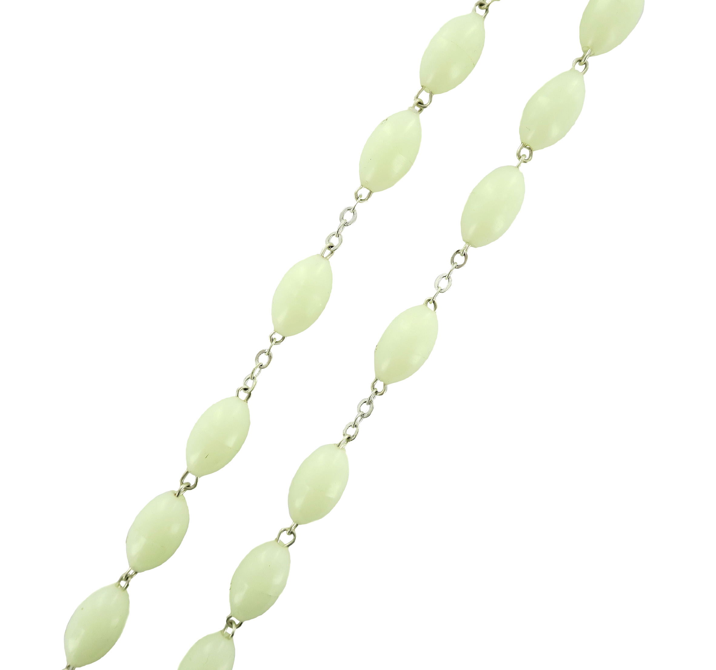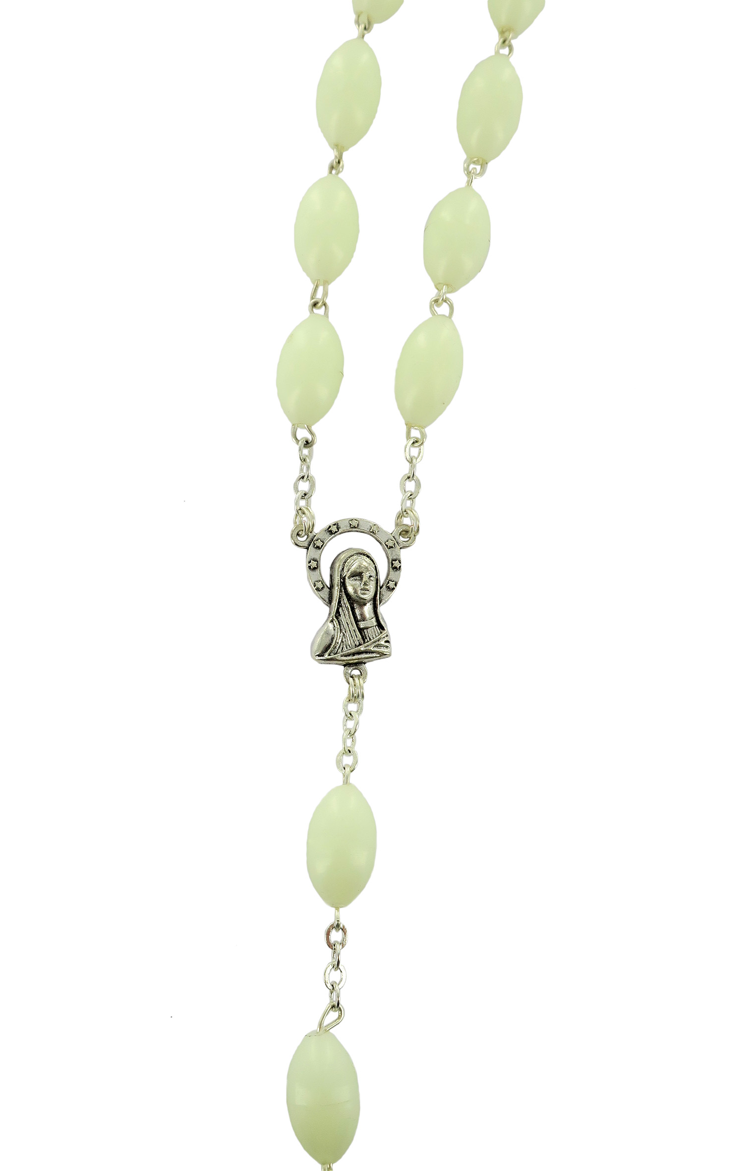 Rosario plastica ovale fosforescente legatura a mano in ottone argentato