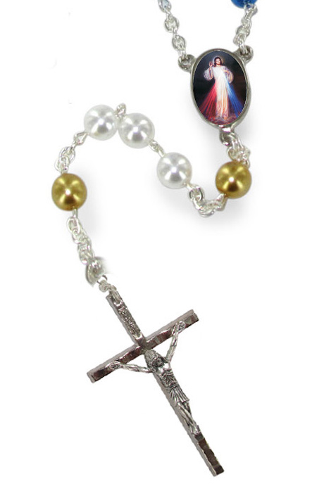 Rosario imitazione perla vetro Ø 6 mm Divina Misericordia con scatola