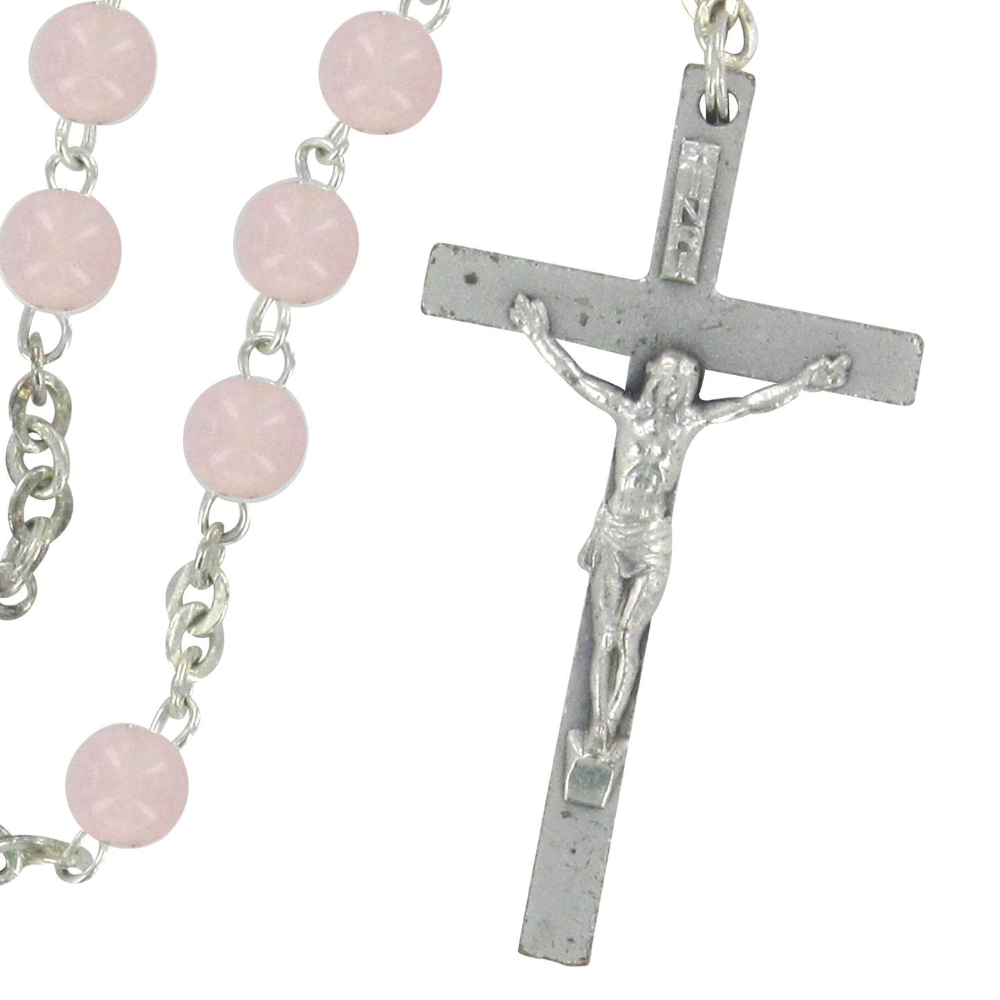 Rosario imitazione madreperla tondo mm 4 legatura ottone argentato - rosa