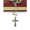 La legatura del rosario è realizzata in metallo argentato cosi come la crocera e la croce.