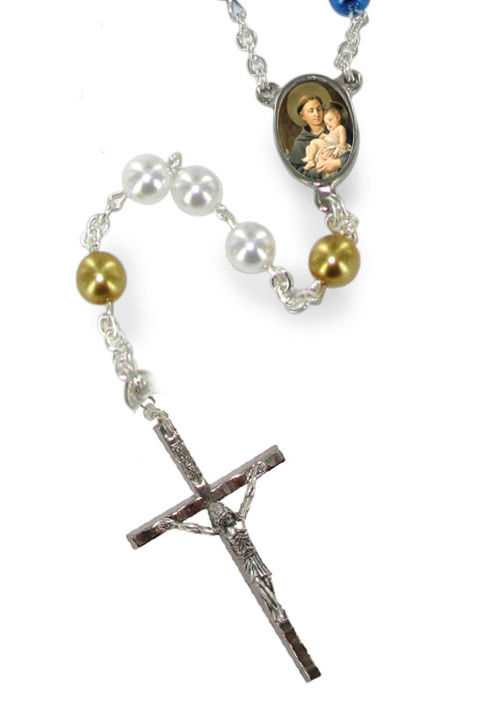 Rosario imitazione perla vetro Ø 6 mm Sant'Antonio con scatola