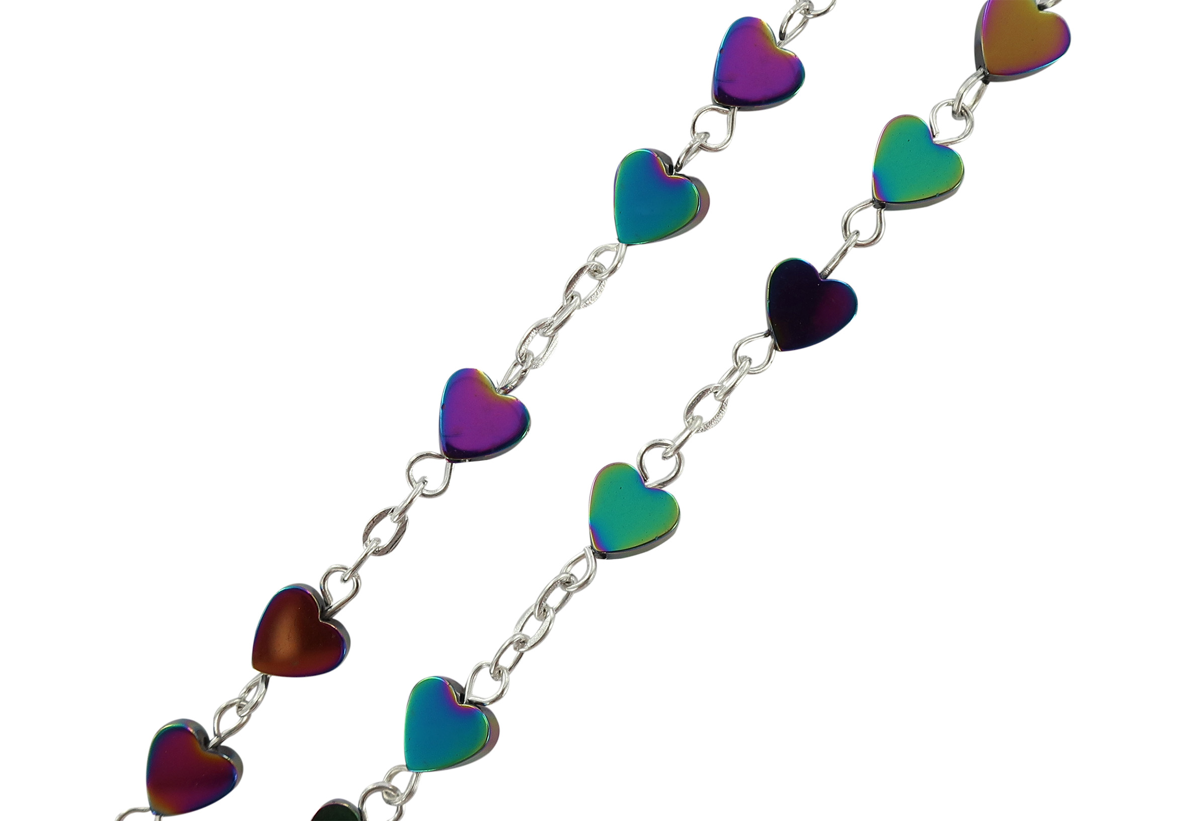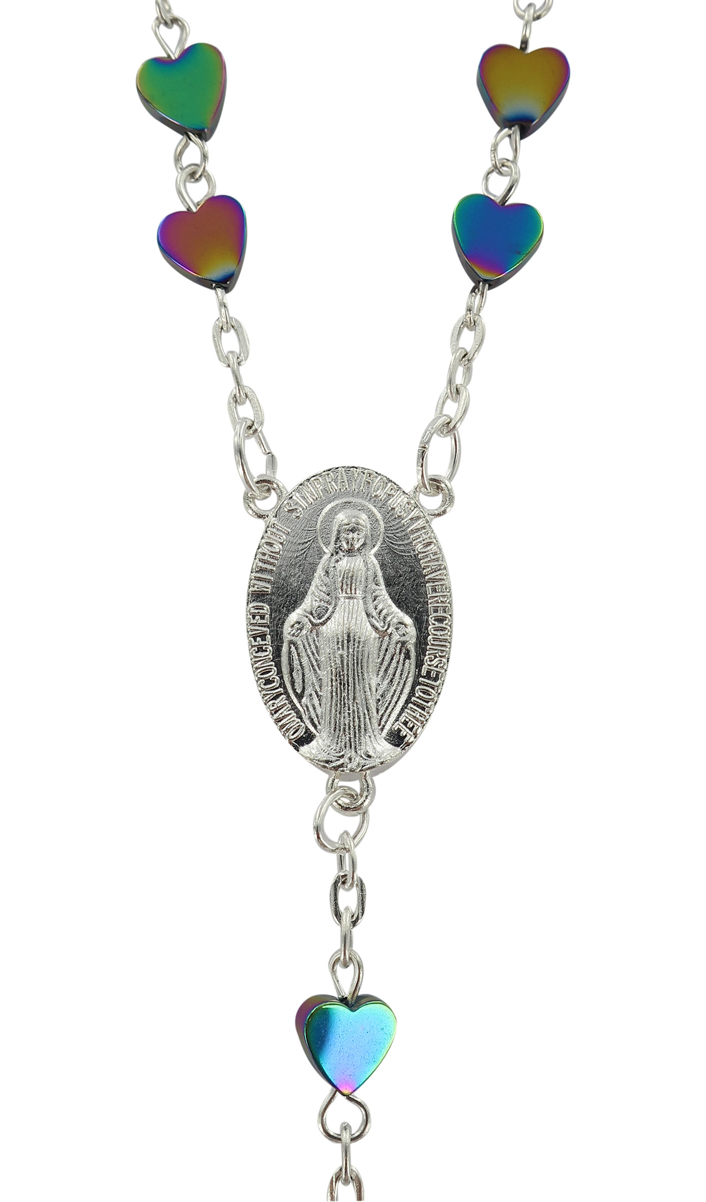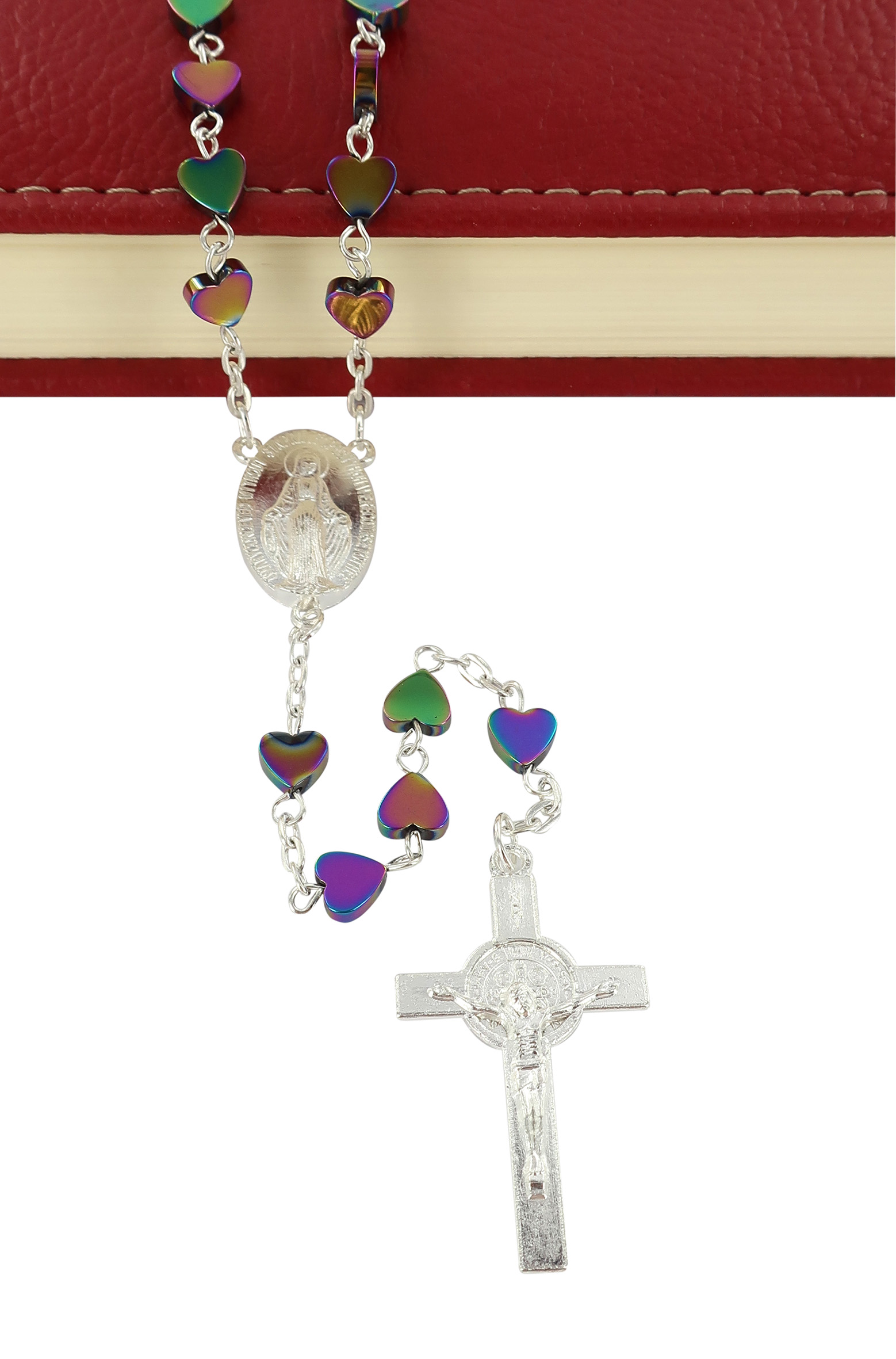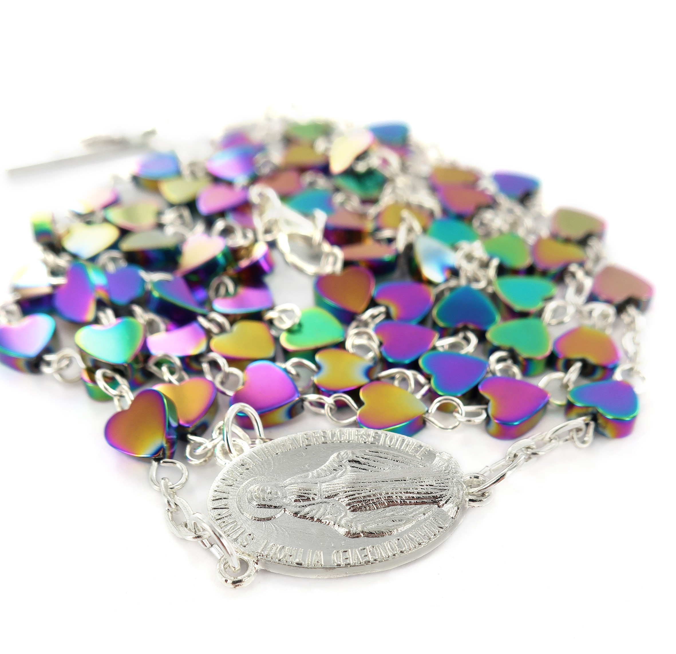 Rosario con Cuoricini Colorati in Confezione Regalo, Plastica e Metallo, Multicolore