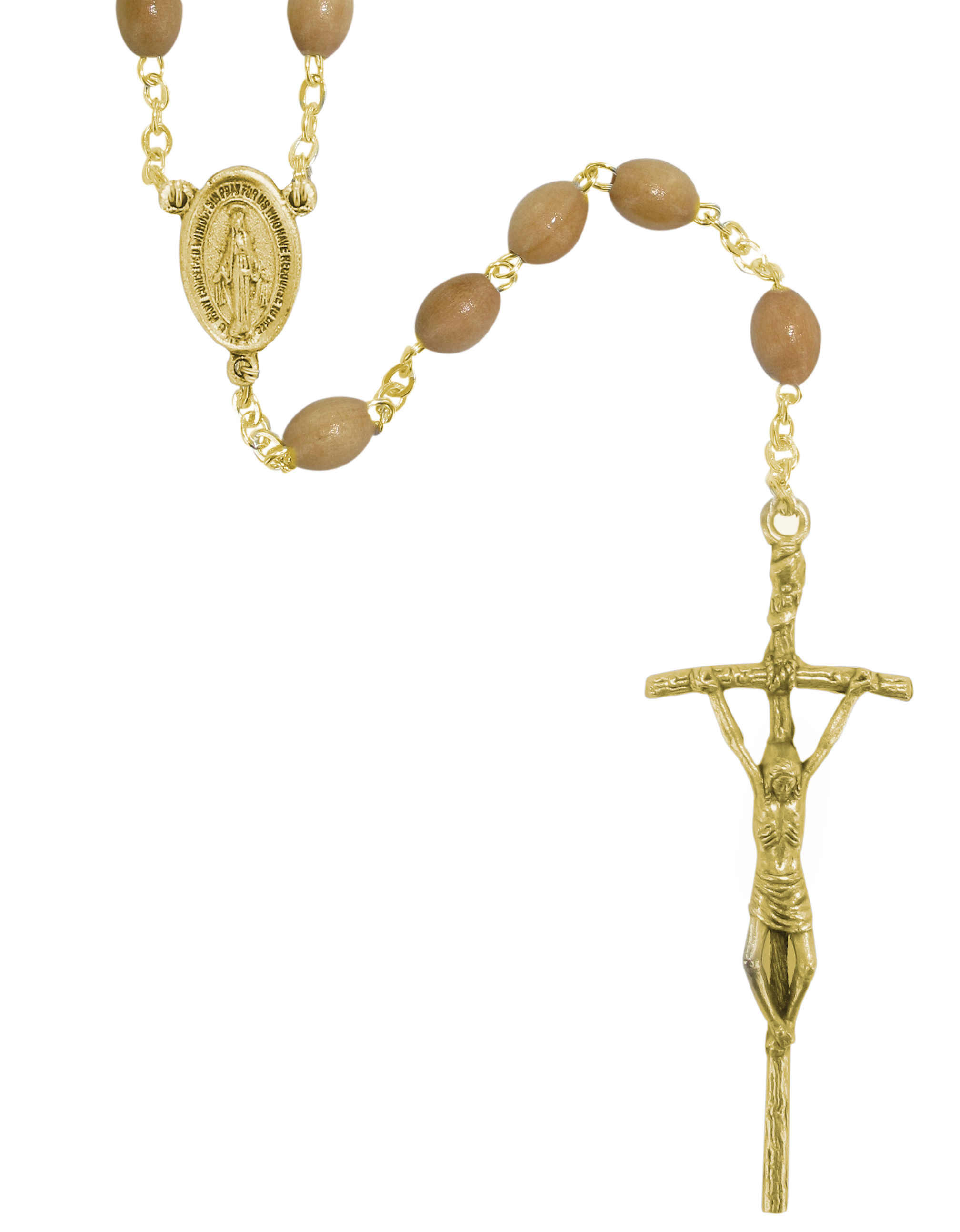 Rosario in legno ulivo ovale mm.6 legatura dorata