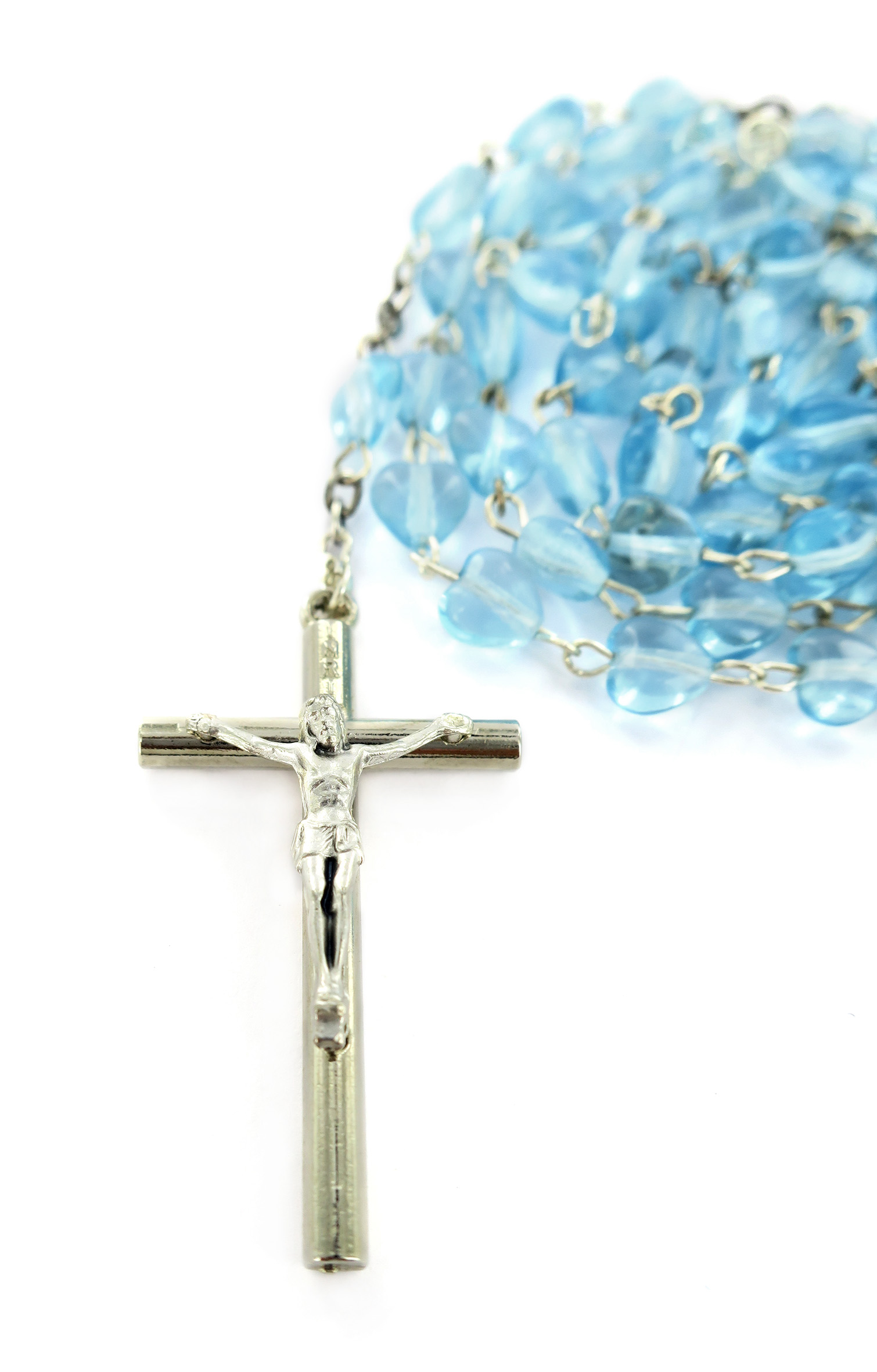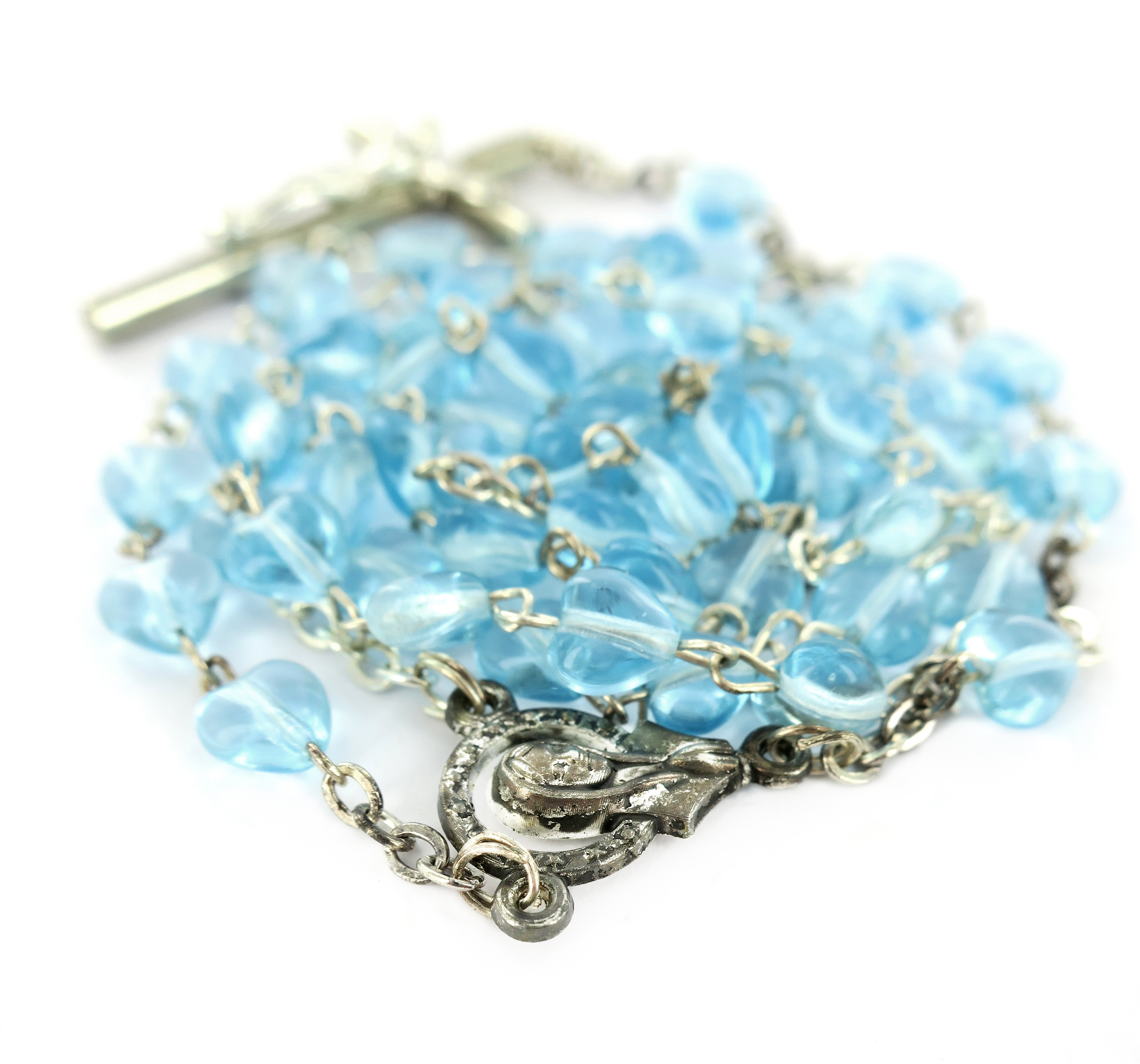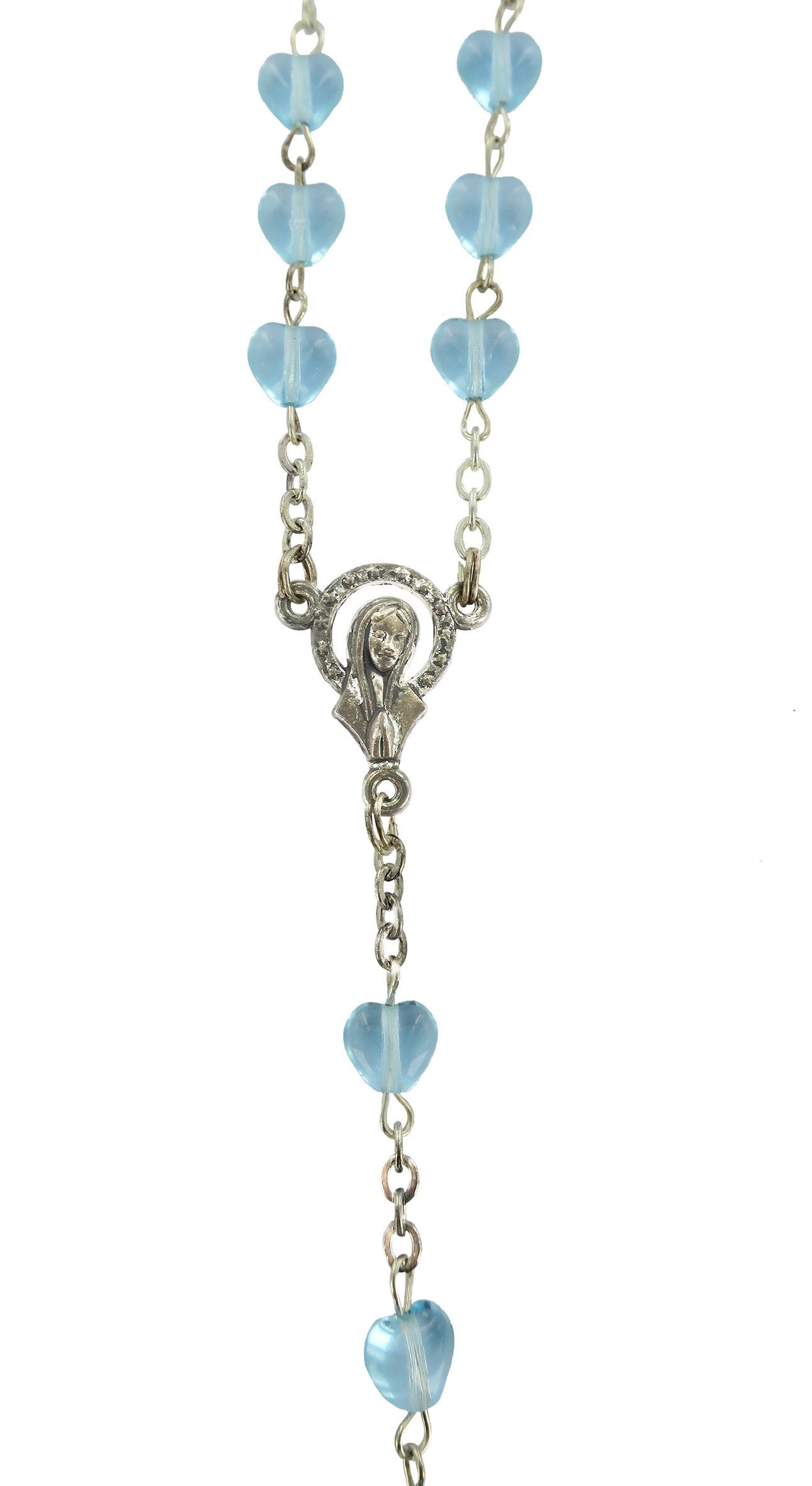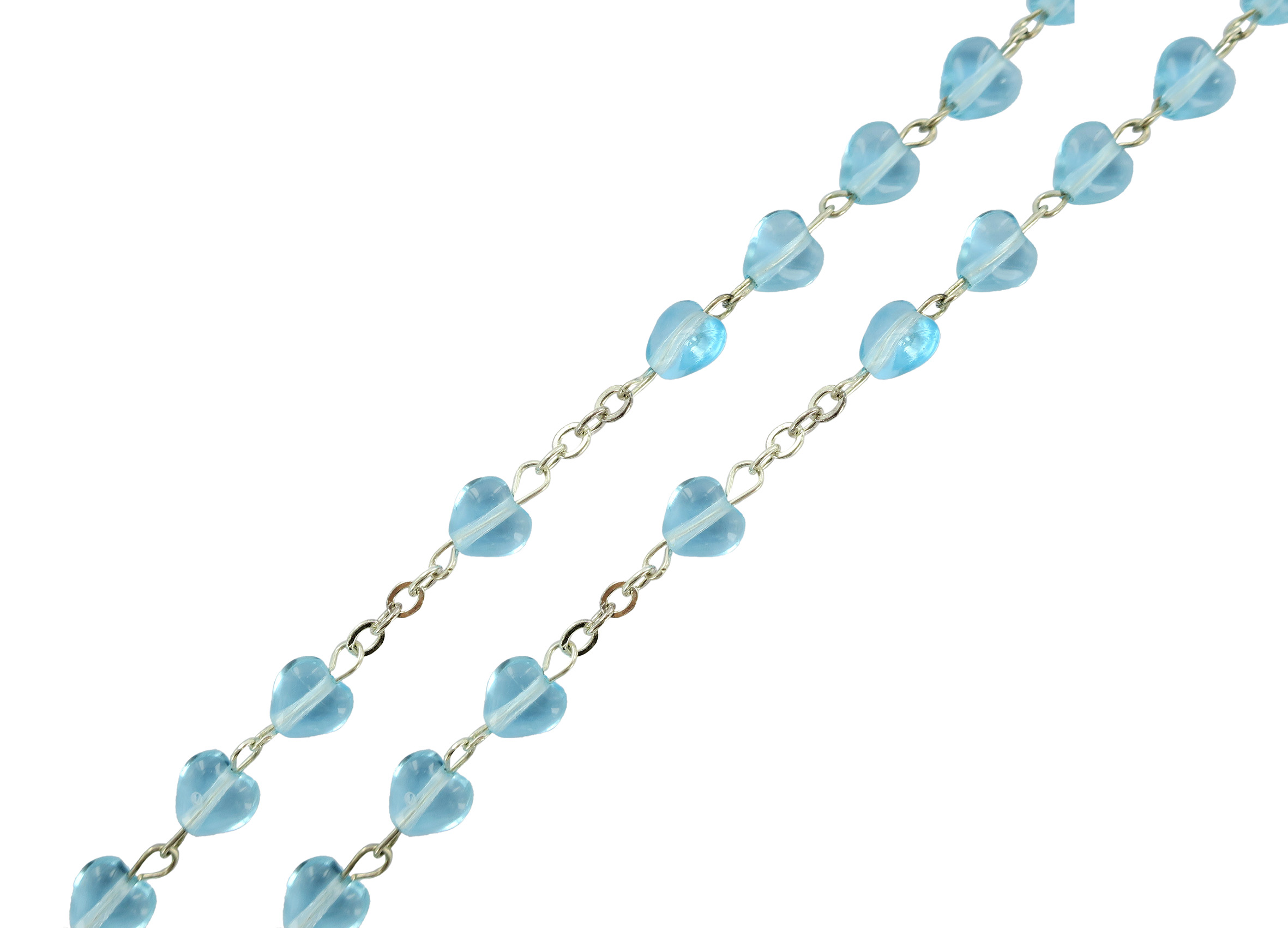 Rosario cuoricino vetro acquamarina Ø 6 mm