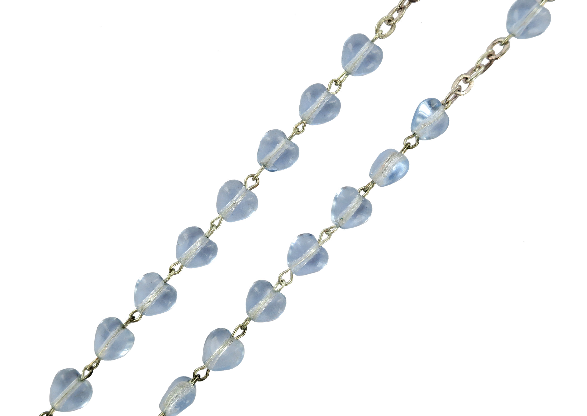 Rosario cuoricino vetro azzurro Ø 6 mm
