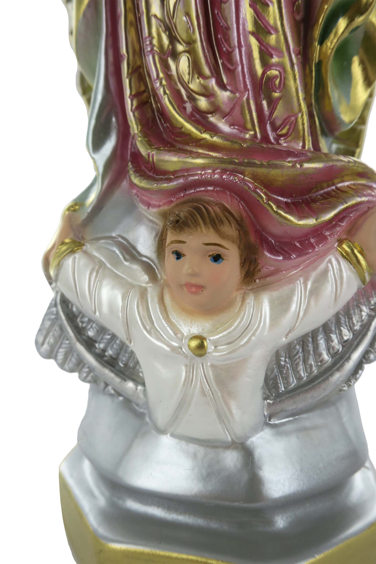 Questa statua della Nostra Signora di Guadalupe da 25 cm è realizzata artigianalmente in Italia e si distingue per la qualità della fattura e per il sapiente uso dei colori. L'effetto madreperlato rende le tinte molto lucenti e arricchisce la figura di suggestivi riflessi, donandole un aspetto elegante e raffinato.