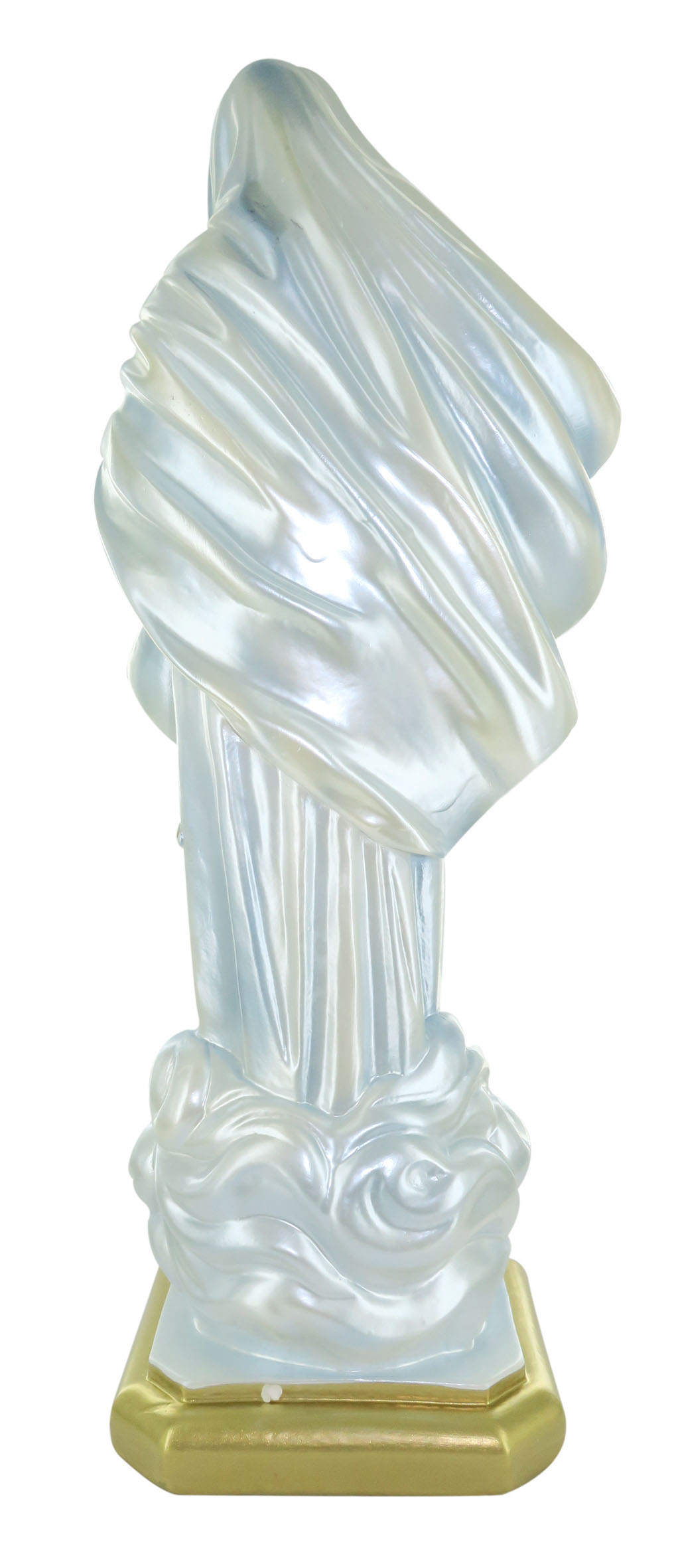 La statua della Madonna di Medjugorje è particolarmente indicata per nicchie di luoghi di culto. La luce delle fiammelle dei lumini o dei faretti esalterà l'effetto iridescente della sua rifinitura madreperlacea e renderà la statua ancora più suggestiva.