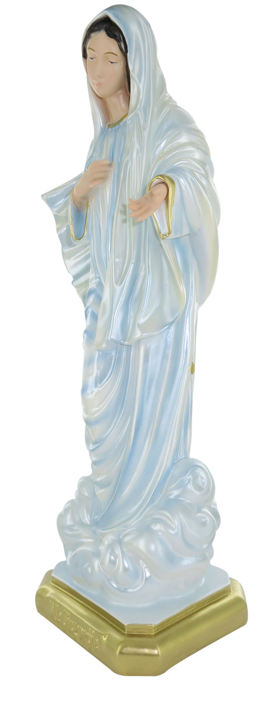 Ferrari & Arrighetti Statua Madonna di Medjugorje Dipinta a Mano, Statua Religiosa Classica Madonna di Medjugorje, Statua per Nicchia / Cappelletta / Chiesa, Gesso Madreperlato, 40 Cm