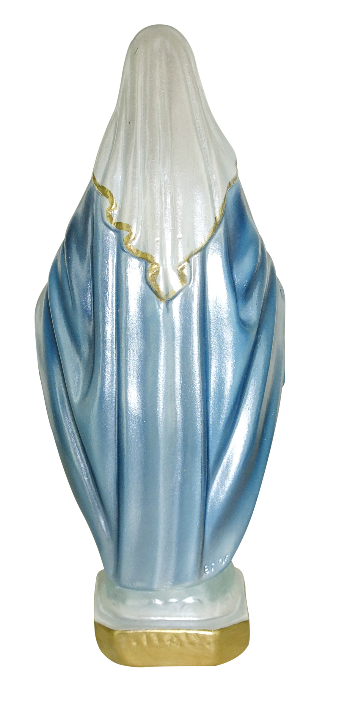Questa statua della Madonna Miracolosa da circa 20 cm è realizzata artigianalmente in Italia e si distingue per la qualità della fattura e per il sapiente uso dei colori. L'effetto madreperlato rende le tinte molto lucenti e arricchisce la figura di suggestivi riflessi, donandole un aspetto elegante e pregevole. La statua della Madonna Miracolosa è ideale per nicchie o ambienti dedicati al culto, ma può anche essere esposta in casa come soprammobile o in una vetrinetta. La luce delle fiammelle dei lumini o dei faretti esalterà l'effetto iridescente della sua rifinitura madreperlacea.