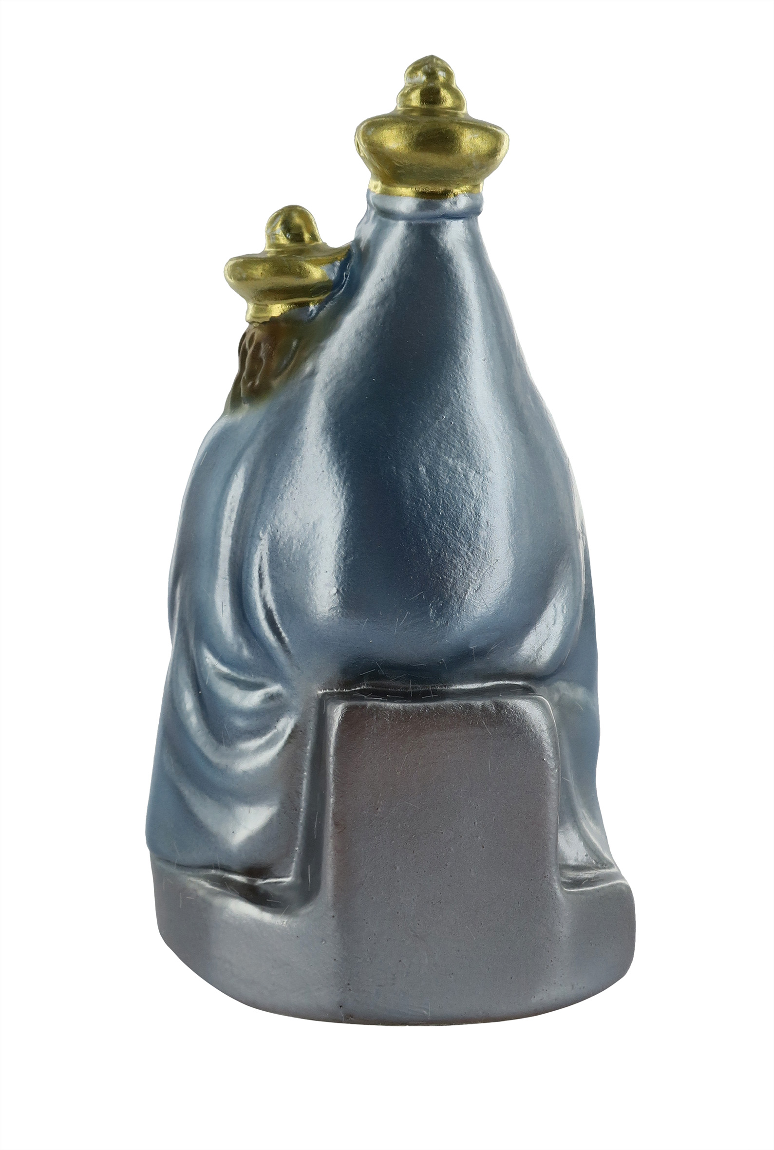 Questa statua della Madonna di Novi Velia da 12 cm è realizzata artigianalmente in Italia e si distingue per la qualità della fattura e per il sapiente uso dei colori, adeguatamente dosati. L'effetto madreperlato rende le tinte molto lucenti e arricchisce la figura di suggestivi riflessi, donandole un aspetto elegante e pregevole. La statuetta della Madonna del Sacro Monte di Novi Velia, adatta anche a piccole nicchie in ambienti dedicati al culto, è ideale per essere esposta in casa come soprammobile o in una vetrinetta. Sarà una gradita idea regalo per i devoti mariani. La luce delle fiammelle dei lumini o dei faretti esalterà l'effetto iridescente della sua rifinitura madreperlacea.