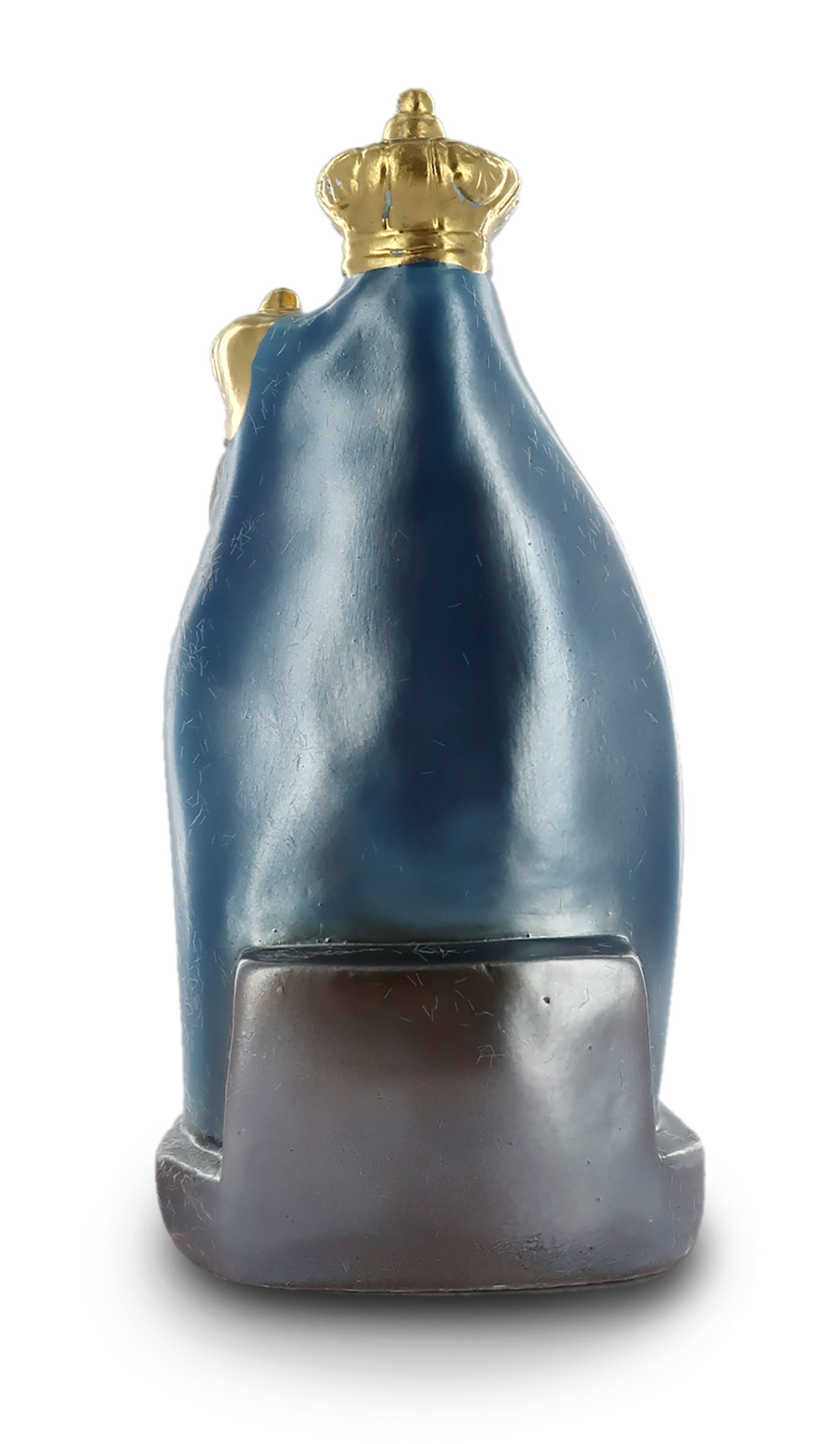 Questa statua della Madonna di Novi Velia da 18 cm circa è realizzata artigianalmente in Italia e si distingue per la qualità della fattura e per il sapiente uso dei colori, adeguatamente dosati. L'effetto madreperlato rende le tinte molto lucenti e arricchisce la figura di suggestivi riflessi, donandole un aspetto elegante e pregevole. La statuetta della Madonna del Sacro Monte di Novi Velia, adatta anche a piccole nicchie in ambienti dedicati al culto, è ideale per essere esposta in casa come soprammobile o in una vetrinetta. Sarà una gradita idea regalo per i devoti mariani. La luce delle fiammelle dei lumini o dei faretti esalterà l'effetto iridescente della sua rifinitura madreperlacea.