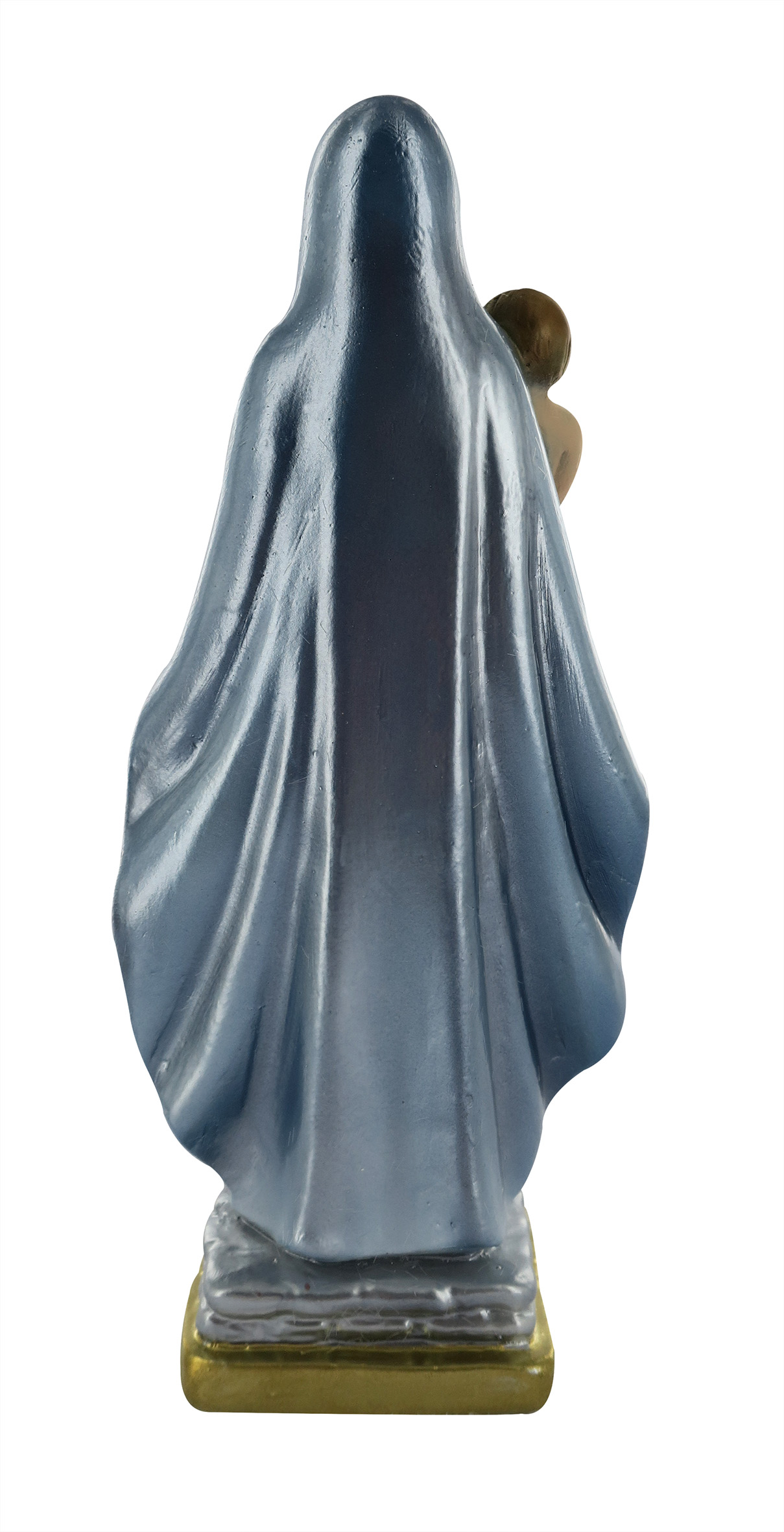 Questa statua della Vergine del Castello di Oliveto Citra da circa 15 cm è realizzata artigianalmente in Italia e si distingue per la qualità della fattura e per il sapiente uso dei colori. L'effetto madreperlato rende le tinte molto lucenti e arricchisce la figura di suggestivi riflessi, donandole un aspetto elegante e raffinato.
