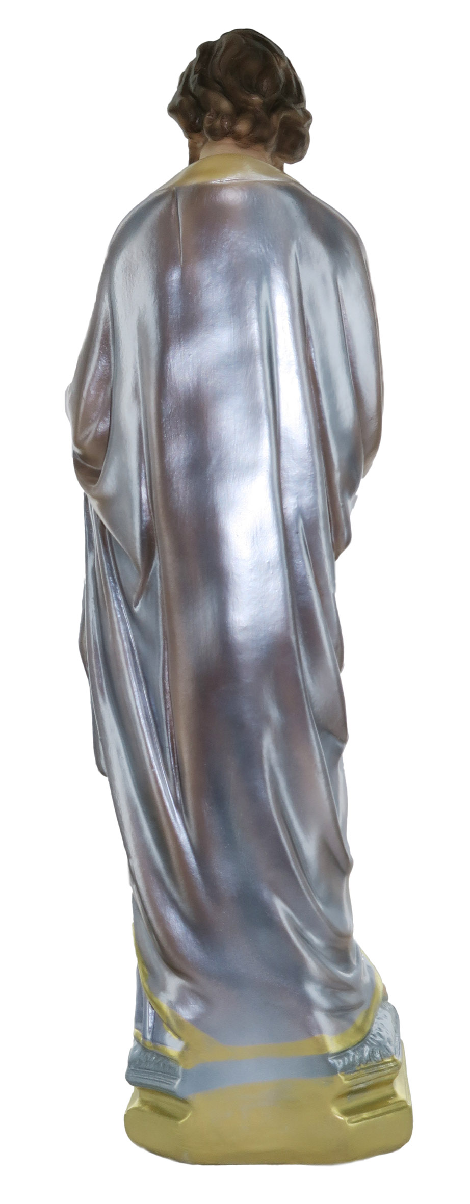 Questa statua di San Giuseppe da 40 cm è realizzata artigianalmente in Italia e si distingue per la qualità della fattura e per il sapiente uso dei colori. L'effetto madreperlato rende le tinte molto lucenti e arricchisce la figura del patrono della Chiesa cattolica e dei lavoratori di suggestivi riflessi, donandole un aspetto elegante e pregiato. La statua di S. Giuseppe è ideale per grandi nicchie o luoghi di culto giuseppini. La luce delle fiammelle dei lumini o di faretti esalterà ulteriormente l'effetto iridescente della sua rifinitura madreperlacea.