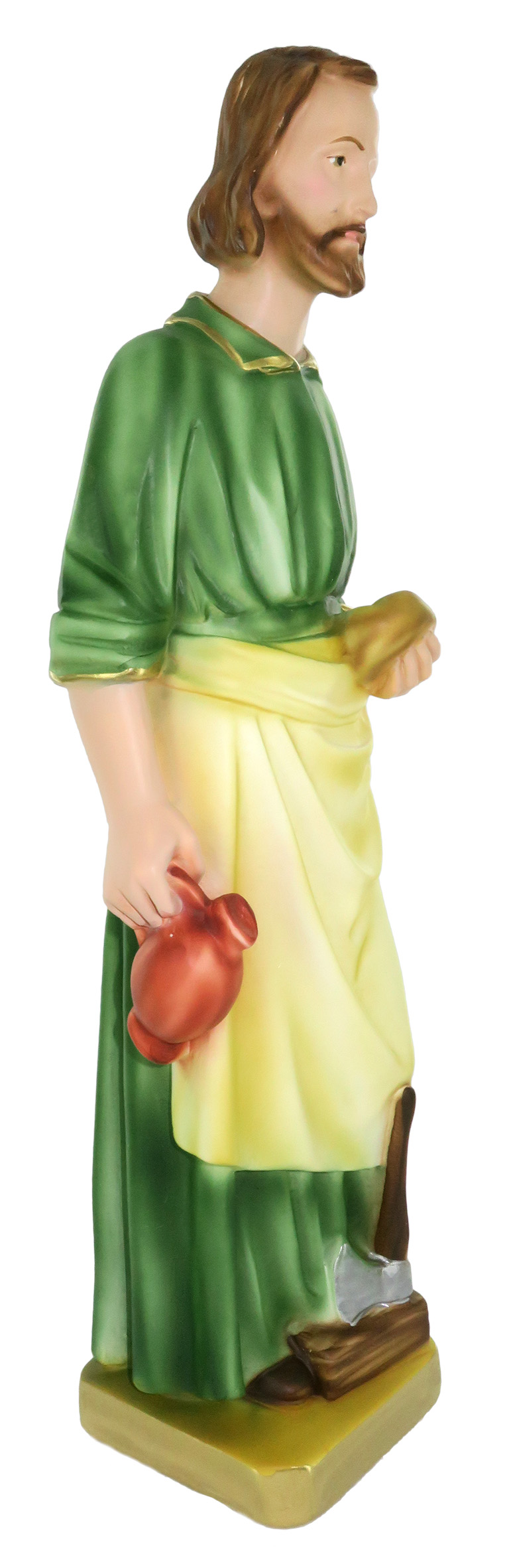 Questa statua di San Giuseppe lavoratore da 30 cm è realizzata artigianalmente in Italia e si distingue per la qualità della sua fattura, il sapiente uso di colori sfumati e la resa accurata delle vesti. Tali caratteristiche contribuiscono a donare profondità e corpo al soggetto. Adatta anche a nicchie in luoghi di culto, la statua di S. Giuseppe può inoltre essere esposta in casa come soprammobile o in una vetrinetta e sarà una gradita idea regalo per i suoi devoti. Lumini o faretti esalteranno la tridimensionalità del personaggio e ne aumenteranno l'impatto visivo.