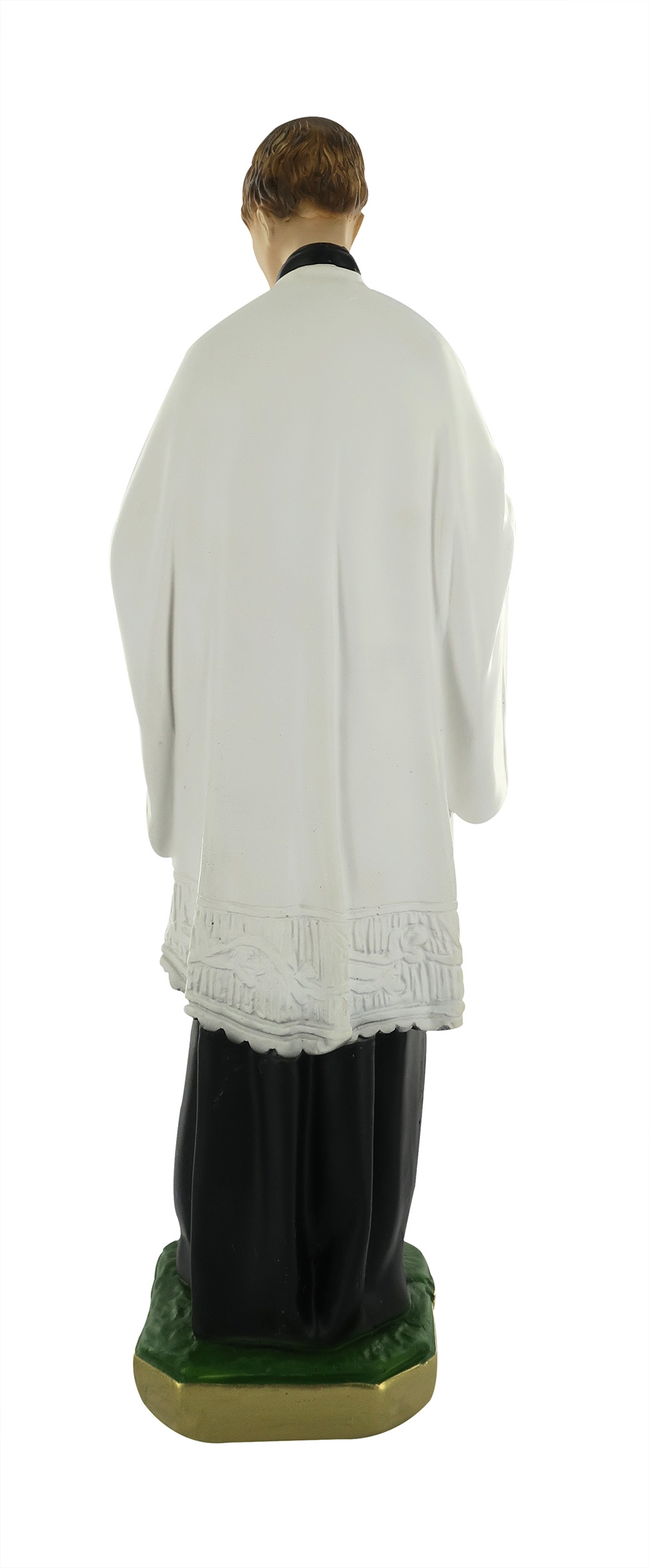 La statua, in gesso finemente dipinto a mano, raffigura San Luigi Gonzaga, gesuita italiano la cui celebrazione cade il 21 giugno. È rappresentato in vesti religiose bianche e nere, con in mano un crocifisso, suo simbolo. È il patrono di giovani, studenti e gesuiti.