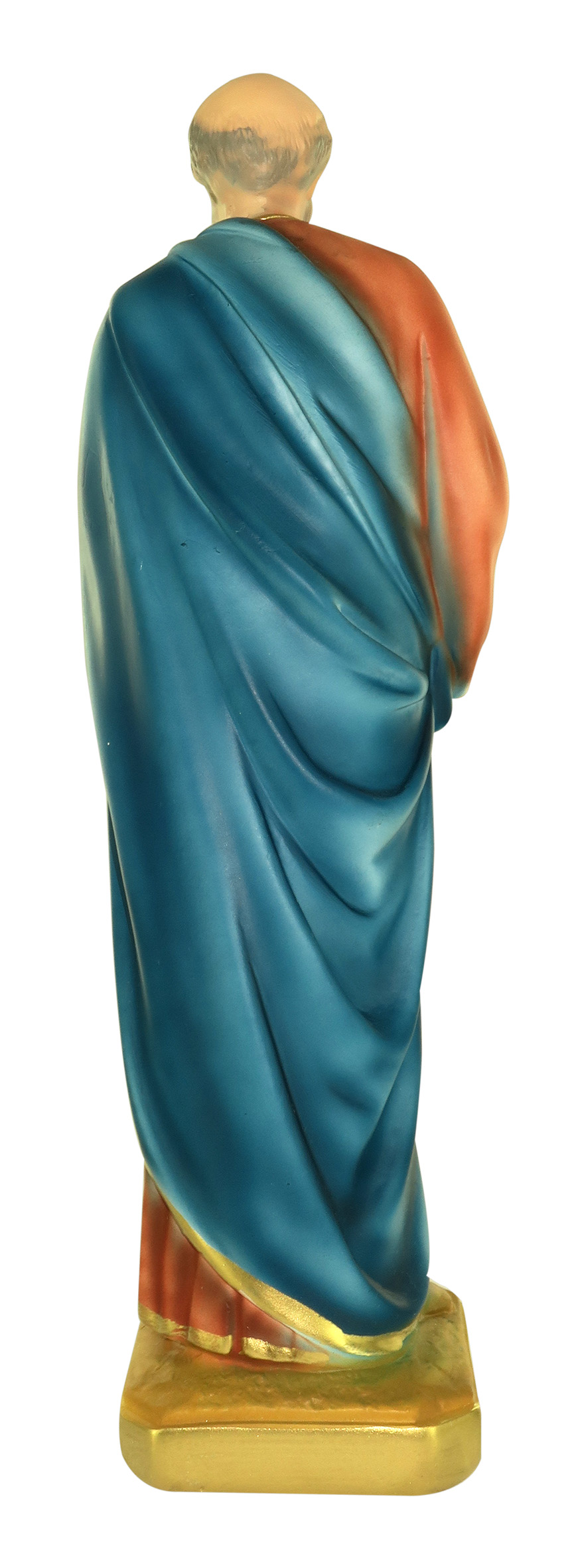 Questa statua di S. Pietro da 30 cm è realizzata artigianalmente in Italia e si distingue per la qualità della sua fattura, il sapiente uso di colori sfumati e la resa accurata delle linee delle vesti. Tali caratteristiche contribuiscono a donare profondità e corpo al soggetto. Adatta anche a piccole nicchie in luoghi di culto, può inoltre essere esposta in casa come soprammobile o in una vetrinetta. La statua di San Pietro è una gradita idea regalo per i suoi devoti. Lumini o faretti esalteranno la tridimensionalità del personaggio e ne aumenteranno l'impatto visivo.