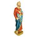 Questa statua di S. Pietro da circa 20 cm è realizzata artigianalmente in Italia e si distingue per la qualità della sua fattura, il sapiente uso di colori sfumati e la resa accurata delle linee delle vesti. Tali caratteristiche contribuiscono a donare profondità e corpo al soggetto. Adatta anche a piccole nicchie in luoghi di culto, può inoltre essere esposta in casa come soprammobile o in una vetrinetta. La piccola statua di San Pietro è una gradita idea regalo per i suoi devoti. Lumini o faretti esalteranno la tridimensionalità del personaggio e ne aumenteranno l'impatto visivo.