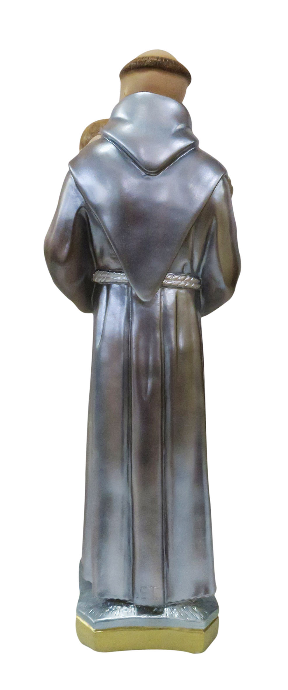 La statua, in gesso finemente dipinto a mano e impreziosito da una rifinitura madreperlata, raffigura Sant'Antonio, il francescano nato a Lisbona e spesso associato alla città di Padova che lo ha ospitato durante i suoi ultimi anni di vita terrena. Il santo, proclamato tale da papa Gregorio IX nel 1232 e dichiarato "dottore della Chiesa" nel 1946, è su un piedistallo, con un bambino in braccio, un rosario, un libro e un mazzo di gigli. La figura del bimbo, vestita di bianco, spicca rispetto al colore della veste dell'uomo, di colore più scuro. Gli indumenti vantano un'attenzione particolare alla resa delle pieghe e delle delicate sfumature, che donano grande plasticità e realismo alla figura.