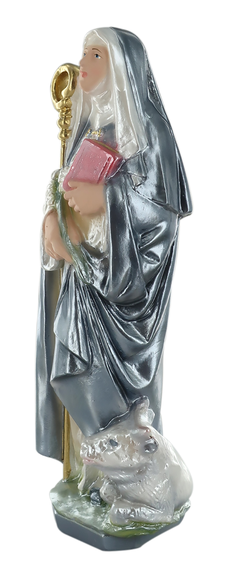Ferrari & Arrighetti Statua Santa Brigida d'Irlanda Dipinta a Mano, Statua Religiosa Classica di S. Brigida di Kildare, Statua per Nicchia o Vetrinetta, Gesso Madreperlato, 30 Cm