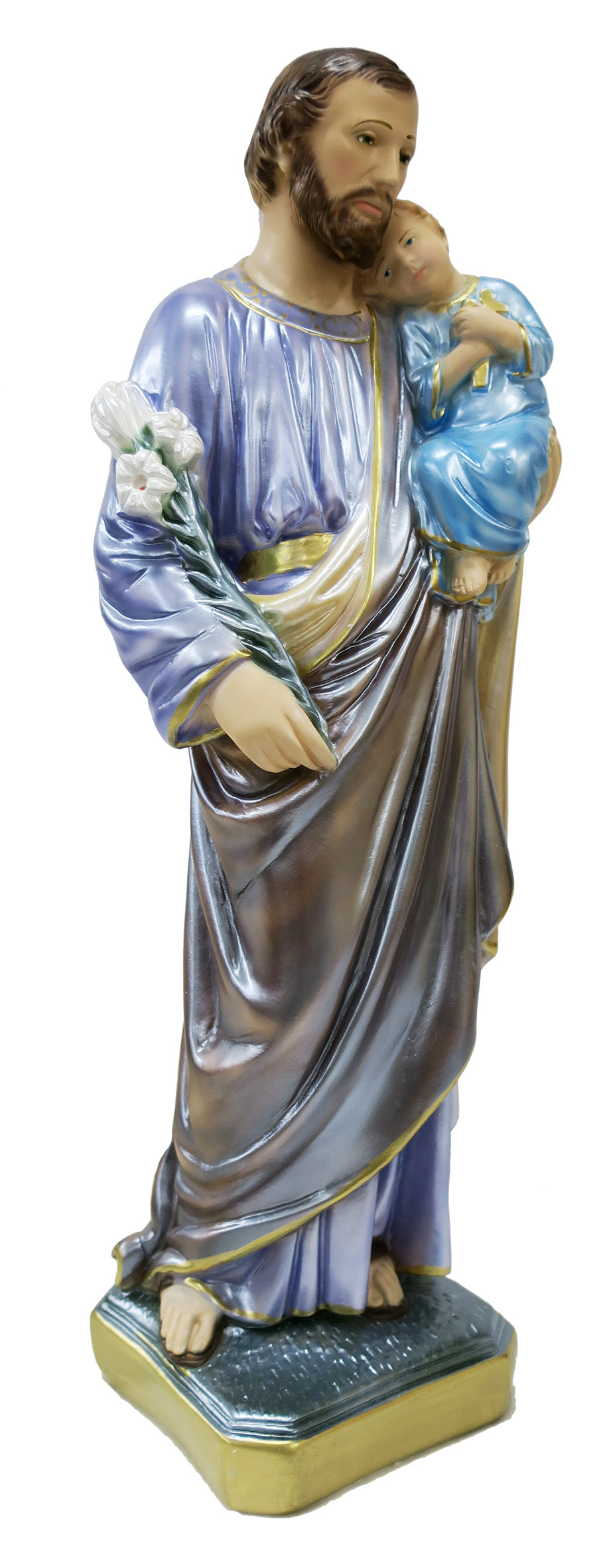 Statua San Giuseppe in gesso madreperlato dipinta a mano - 50 cm