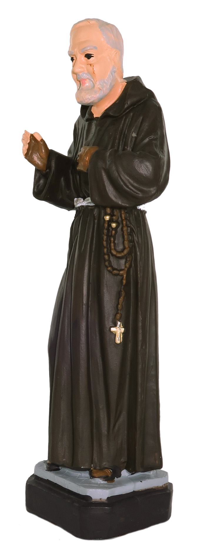 Questa statua di S. Pio da circa 16 cm è realizzata artigianalmente in Italia e si distingue per la durevolezza della fattura e per i suoi colori coprenti.