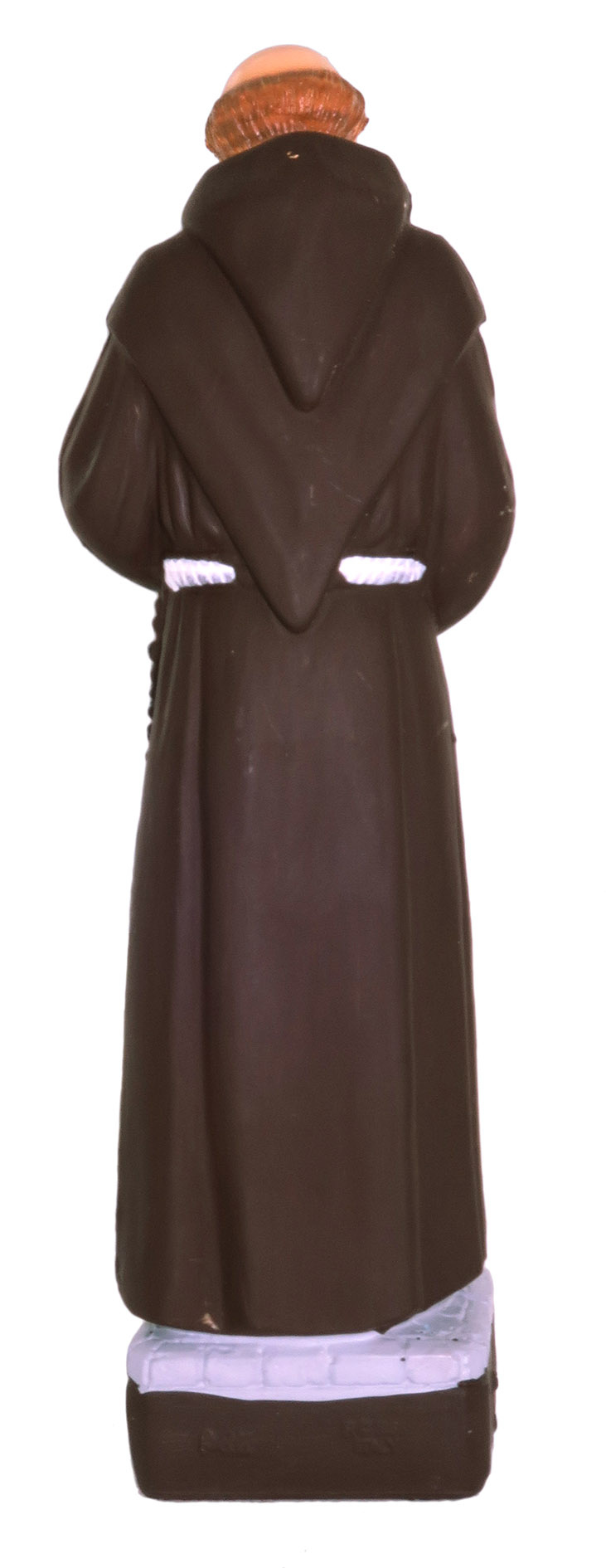 Questa statua di S. Francesco d'Assisi da circa 16 cm è realizzata artigianalmente in Italia e si distingue per la durevolezza della fattura e per i suoi colori coprenti.