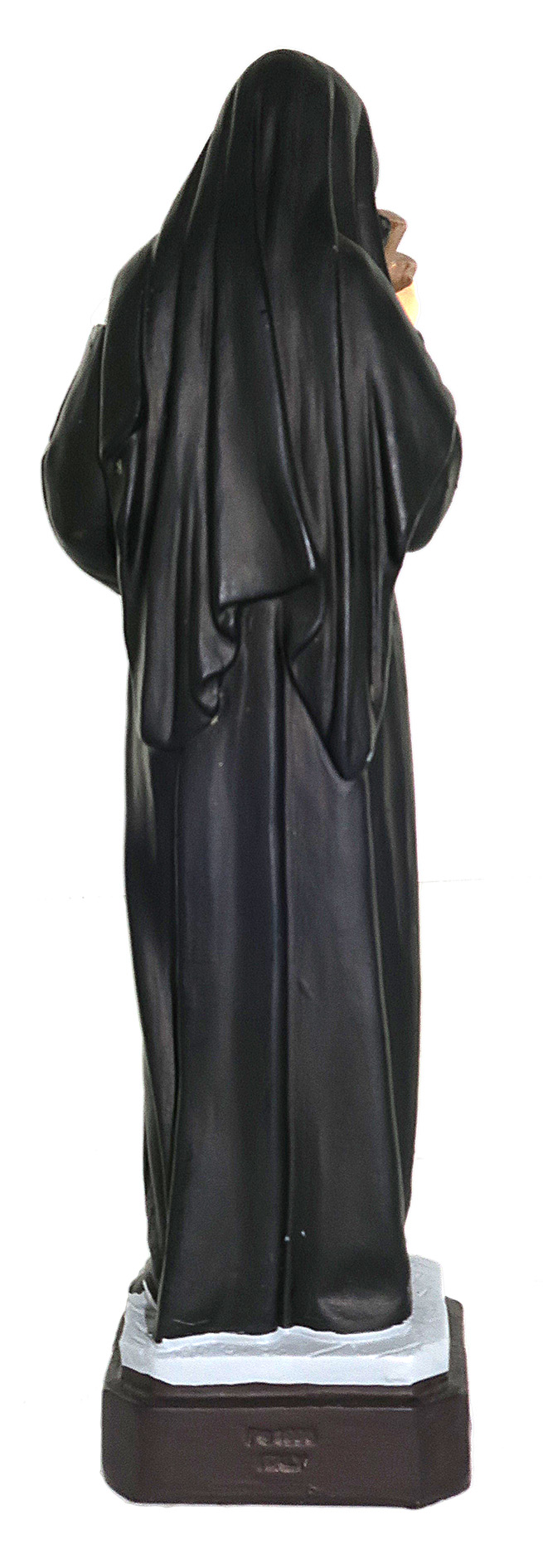 La statua, in materiale infrangibile tipo gomma, raffigura Santa Rita da Cascia ed è dipinta a mano. Grazie al materiale di cui è fatta e alla resistenza che la caratterizza, è adatta all'uso esterno, come giardini e nicchie all'aperto. Può essere esposta anche alla pioggia.