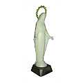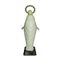 Statua della Madonna Miracolosa realizzata in plastica fosforescente. La statua misura 20 cm ed è incollata su piedistallo di 2 cm. L'aureola è removibile.