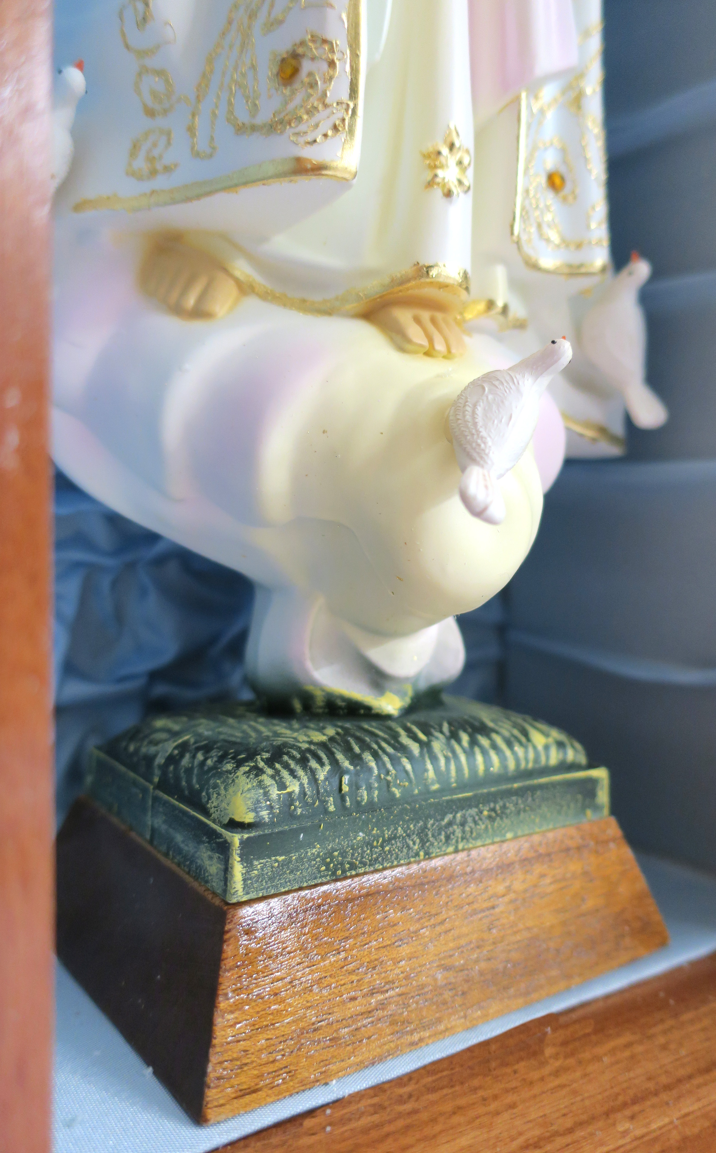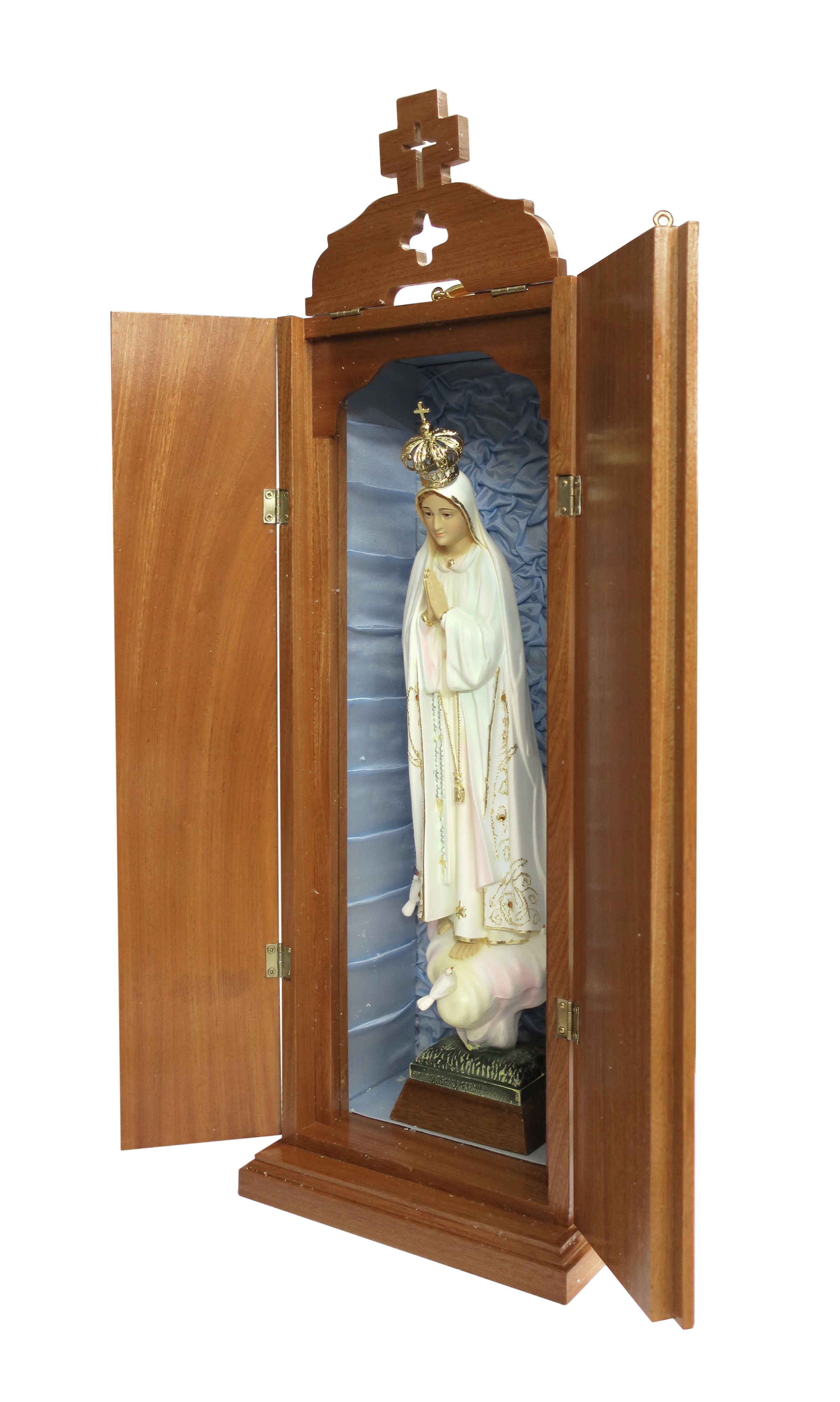 Statua Madonna di Fatima dipinta a mano (49 cm) con custodia/vetrinetta espositiva in legno (70 cm)