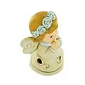 Angelo che prega con luce LED, orli e fiori azzurri, in resina, 15 cm