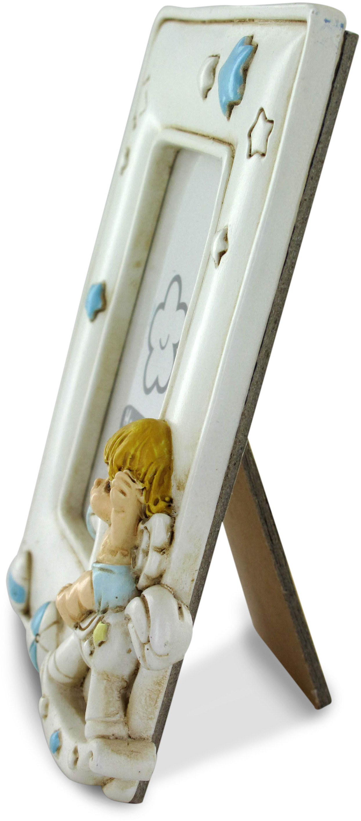 Portafoto in resina angelo dondolo azzurro - 12 x 9,5 cm