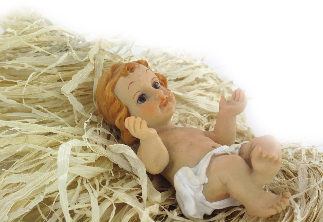 Questa statuina di Gesù Bambino, parte della Linea Natalizia di Ferrari & Arrighetti, è il simbolo della nascita del Salvatore. Raffigurato a braccia aperte e col viso rivolto al cielo, il bambino poggia sulla schiena sopra un giaciglio di simil-paglia che vuole ricordare il fieno della mangiatoia usata come culla nella capanna della Sacra Famiglia.