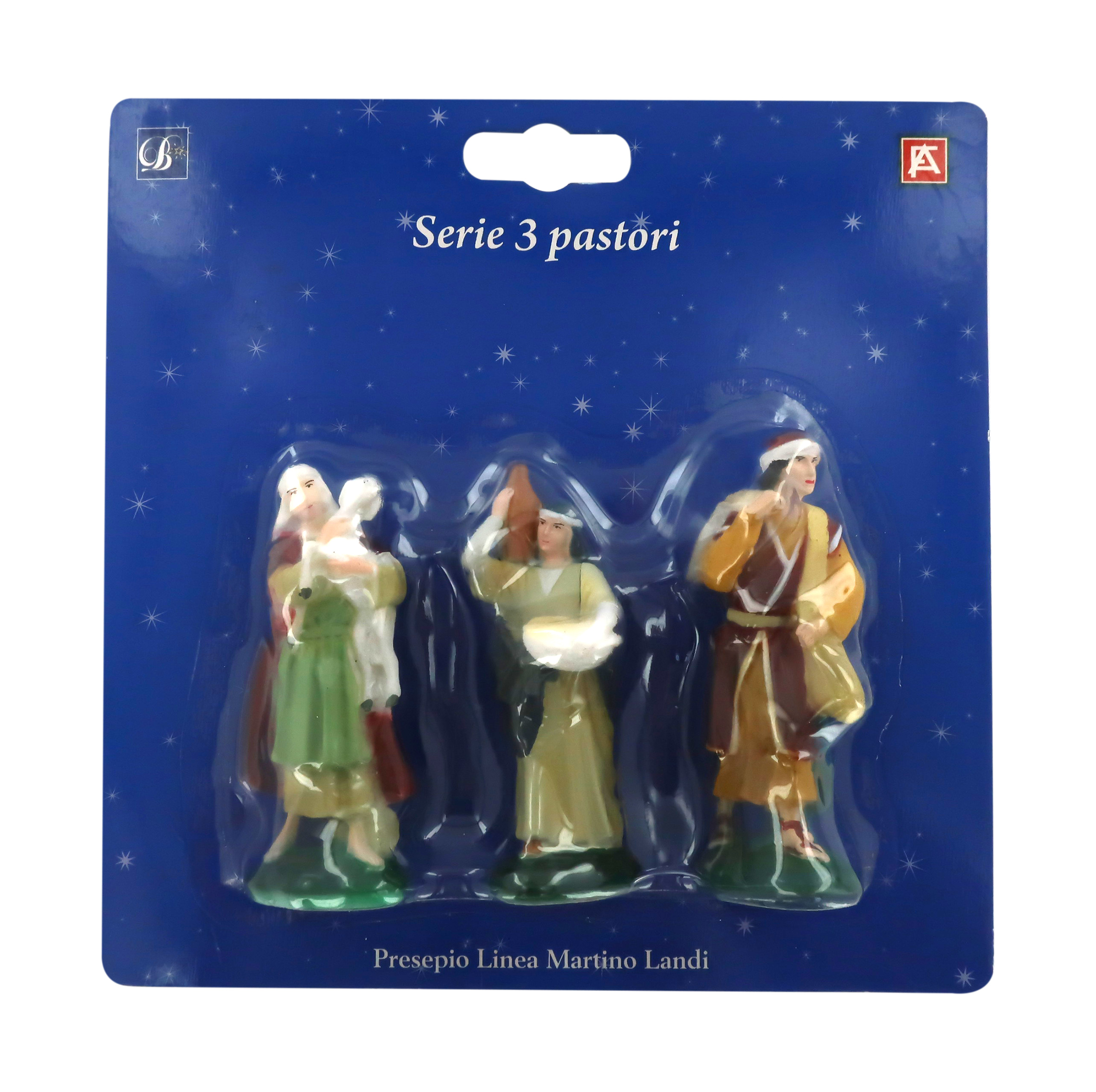 Questo set di statuine di pastori della serie Martino Landi, adatto a presepi da 9 cm d'altezza, è in PVC colorato ed è formato da 3 pezzi: il pastore viandante, la pastorella con brocca e il pastore con pecorella. Realizzate su modello concepito dal celeberrimo scultore Martino Landi, le statuine ripropongono le caratteristiche tipiche delle creazioni del famoso maestro d’arte sacra, come l’attenzione e la cura dei dettagli. Il set è dedicato a tre figure agresti, ritratte in momenti della loro quotidianità. Le statuine sono contenute in una pratica confezione blister e avendo ognuna una propria base, possono essere collocate nel presepe come meglio desiderate. Per completare il vostro presepe Landi da 9 cm, potrete acquistare altri set che includono ulteriori personaggi.