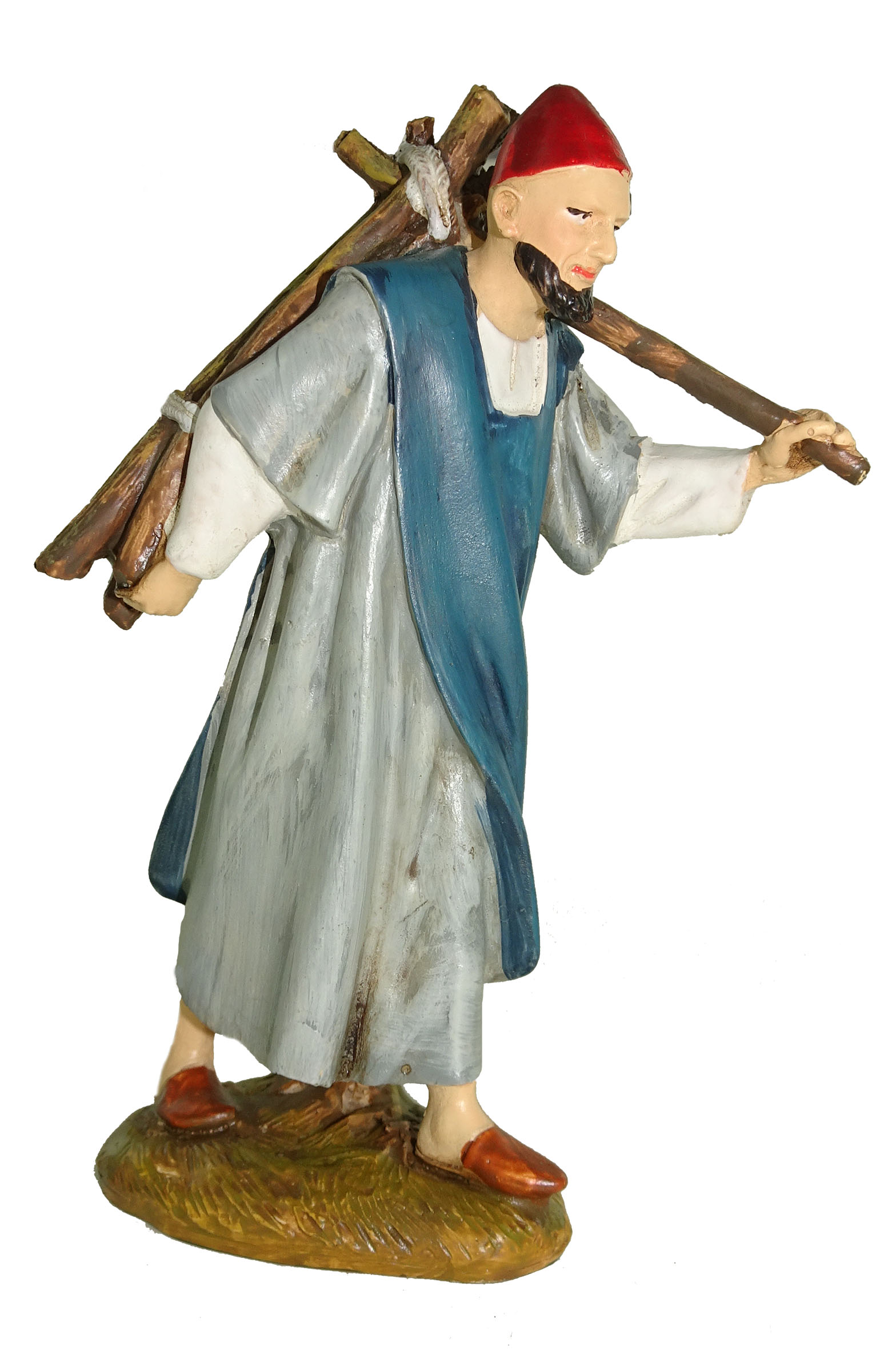 Ferrari & Arrighetti Statuine Presepe, Statuina Pastore con Legna per Presepe da 10 Cm, Statuina Pastore per Presepe Classico / Tradizionale Stile Martino Landi, Resina Dipinta a Mano