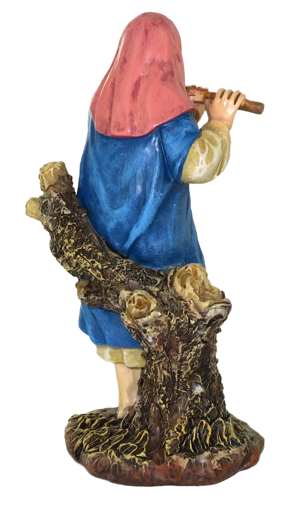 La statuina del pastore con piffero, in resina colorata e rifinita a mano, arricchirà sicuramente il vostro presepe tradizionale. Il pastore è raffigurato in posizione eretta, appoggiato al tronco di un albero, intento a suonare il piffero per celebrare la nascita di Gesù Bambino e creare un’atmosfera di gioia. Veste un copricapo rosa, una tunica beige e un mantello azzurro. La sinuosità delle linee delle vesti e la fedeltà di riproduzione dei dettagli del tronco dell’albero vi consentiranno di ricreare scene molto fedeli alla realtà. Questa statuina è adatta a essere usata nel presepe Landi da 10 cm.