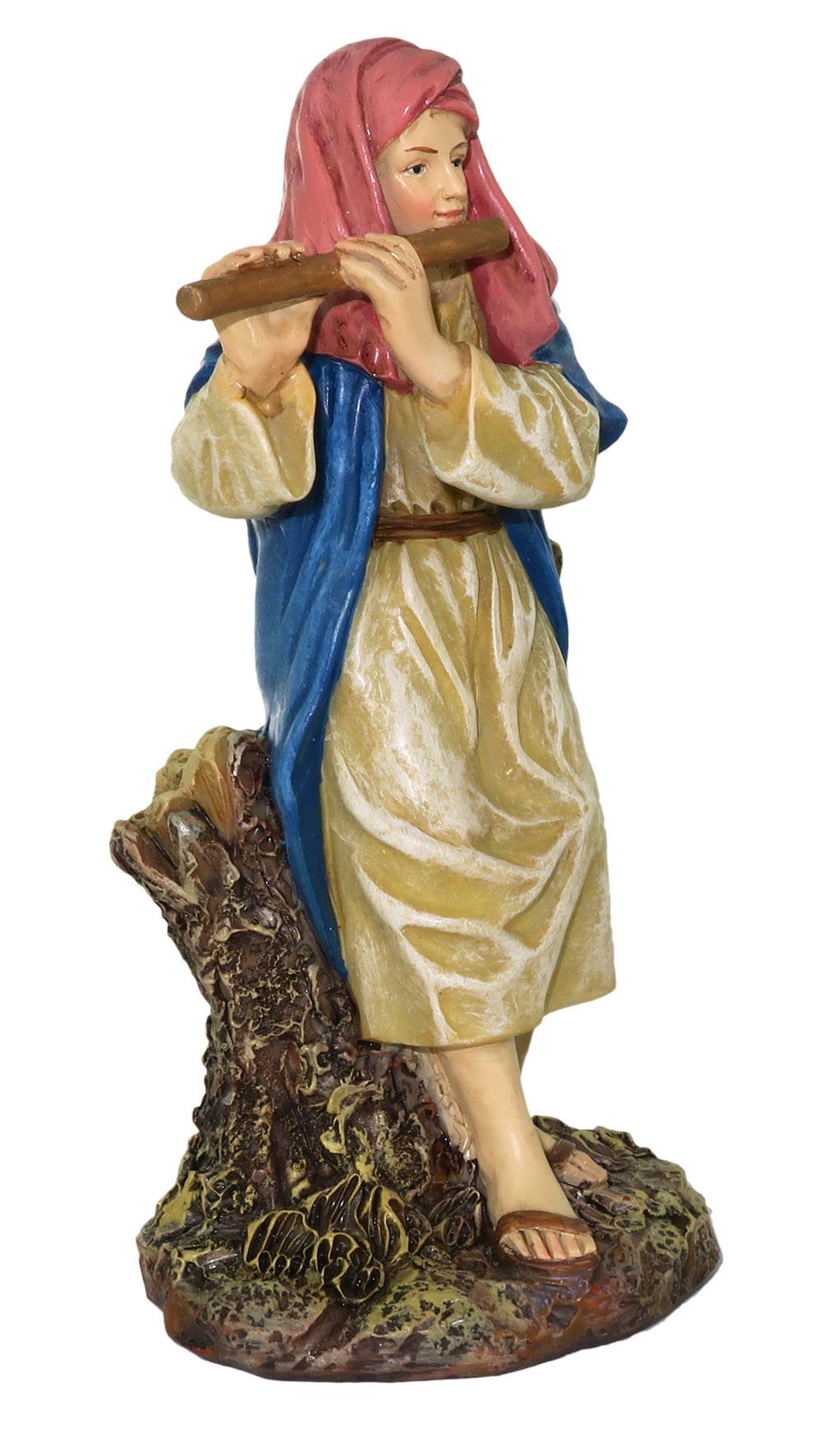 Ferrari & Arrighetti Statuine Presepe, Statuina Pastore con Piffero per Presepe da 10 Cm, Statuina Suonatore di Piffero per Presepe Classico / Tradizionale, Resina Dipinta a Mano