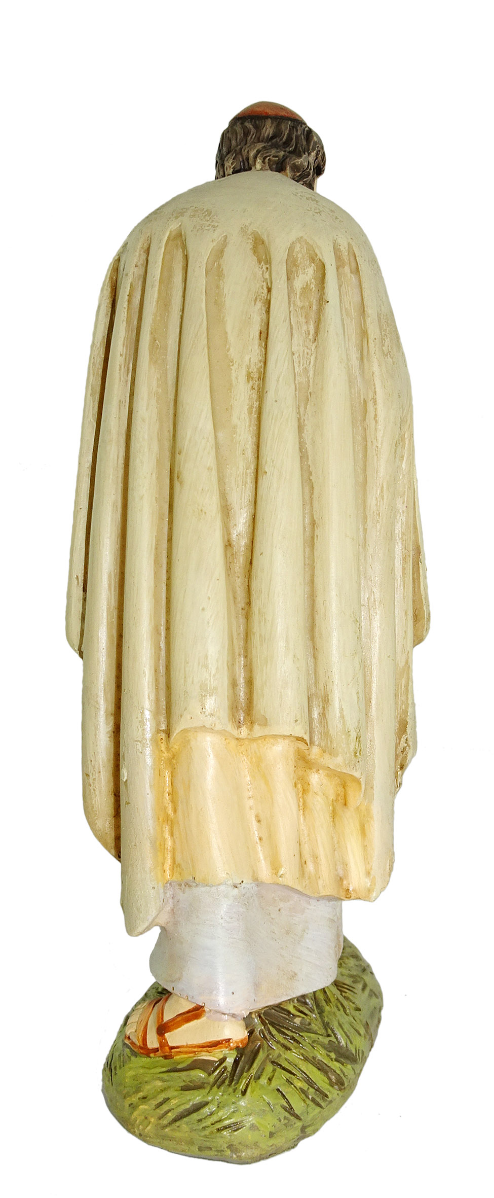La statuina di San Giuseppe per presepe Landi da 16 cm, in resina colorata e rifinita a mano, è stata creata dallo scultore d’arte sacra Martino Landi e rappresenta un pezzo indispensabile per il vostro presepe tradizionale. In posizione eretta, ma appoggiato al proprio bastone e con lo sguardo rivolto verso il basso, idealmente verso la mangiatoia dove troverà posto il Bambin Gesù, San Giuseppe è raffigurato con un copricapo marrone e vesti dalle delicate tonalità del beige e del grigio. L’uso particolare del colore e delle sfumature, insieme all’effetto anticato applicato ad alcune parti di questa statuina di Giuseppe, conferiscono profondità al soggetto e lo rendono ancora più realistico. Il peso della statuina è di 160 gr, mentre il peso con imballo è di 202 gr. Le dimensioni della statuina sono 9 cm (larghezza), 15 cm (altezza), 4 cm (profondità), mentre le dimensioni dell'imballo sono 10 cm (larghezza), 16 cm (altezza), 7 cm (profondità). A causa della pittura a mano, le tonalità dei colori potrebbero variare. Il presepe è una tradizione natalizia molto amata in Italia. L'usanza del presepe coinvolge famiglie che, con cura e devozione, allestiscono nel periodo di Natale il presepe con statuine rappresentanti la Natività e le persone che rendono omaggio a Gesù Bambino. Un'emozione unica, che unisce tradizione e spiritualità, si prova ammirando una ricostruzione creativa e simbolica della nascita di Gesù.