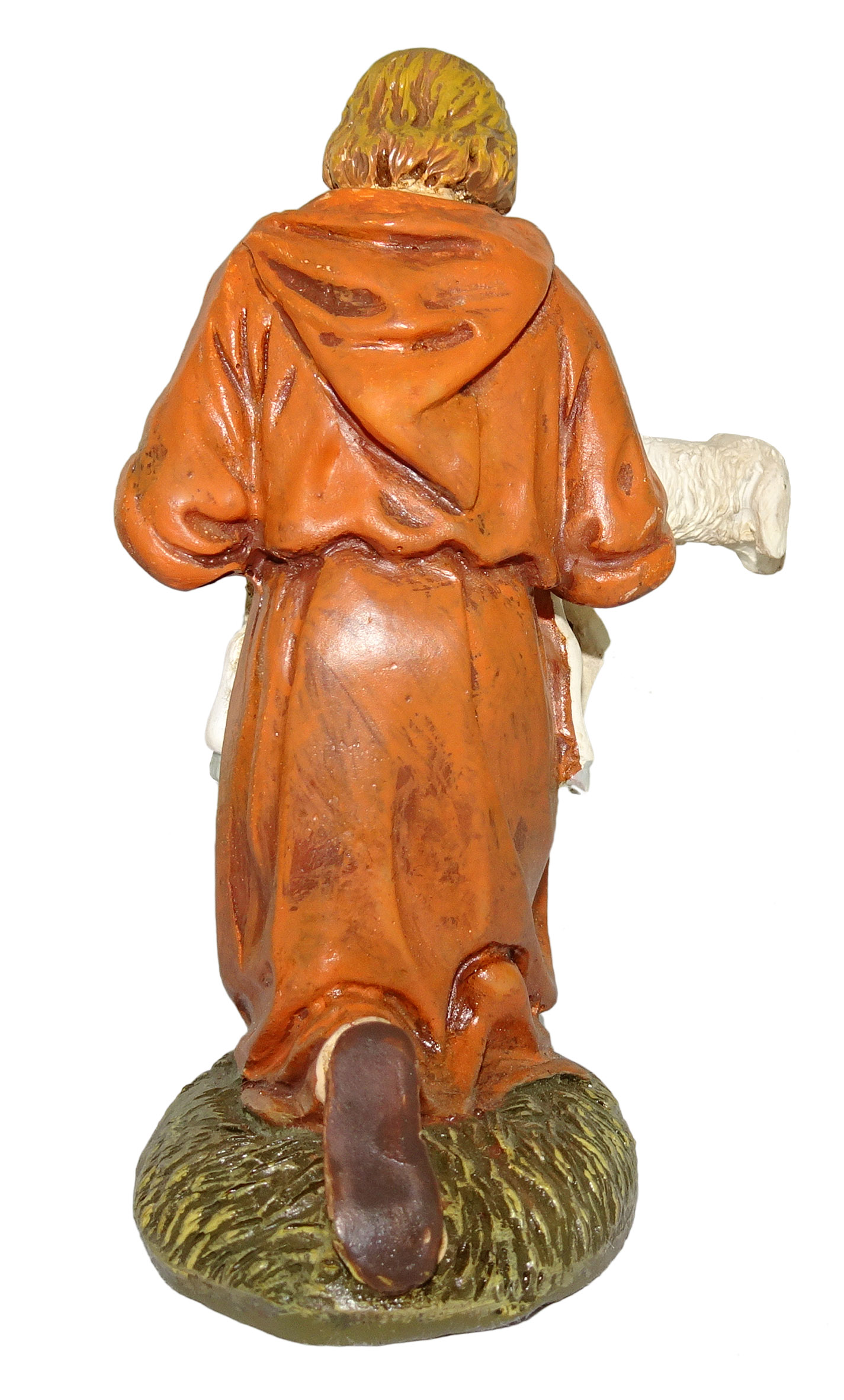 La statuina del pastore in ginocchio con agnello per presepe Landi da 12 cm, in resina colorata e rifinita a mano, è stata creata dallo scultore d’arte sacra Martino Landi e rappresenta un personaggio che arricchirà sicuramente il vostro presepe tradizionale. Il pastore è raffigurato inginocchiato e cinge un agnello tra le braccia, che sarà dato in dono alla Sacra Famiglia. La sagoma dell’ovino spicca grazie ai toni caldi dell’arancio della tunica del pastorello e ai suoi capelli biondi. Le linee della figura umana, così come la fedeltà di riproduzione dei dettagli del manto dell’agnello, rappresentano la firma di Landi, che rimane sempre fedele alla tradizione, proponendo personaggi e particolari resi con precisione artigianale. Il peso della statuina è di 77 gr, mentre il peso con imballo è di 97 gr. Le dimensioni della statuina sono 6 cm (larghezza), 9,5 cm (altezza), 5,5 cm (profondità), mentre le dimensioni dell'imballo sono 7 cm (larghezza), 10 cm (altezza), 6 cm (profondità). A causa della pittura a mano, le tonalità dei colori potrebbero variare. Il presepe è una tradizione natalizia molto amata in Italia. L'usanza del presepe coinvolge famiglie che, con cura e devozione, allestiscono nel periodo di Natale il presepe con statuine rappresentanti la Natività e le persone che rendono omaggio a Gesù Bambino. Un'emozione unica, che unisce tradizione e spiritualità, si prova ammirando una ricostruzione creativa e simbolica della nascita di Gesù. Il presepe è una tradizione natalizia molto amata in Italia. L'usanza del presepe coinvolge famiglie che, con cura e devozione, allestiscono nel periodo di Natale il presepe con statuine rappresentanti la Natività e le persone che rendono omaggio a Gesù Bambino. Un'emozione unica, che unisce tradizione e spiritualità, si prova ammirando una ricostruzione creativa e simbolica della nascita di Gesù.