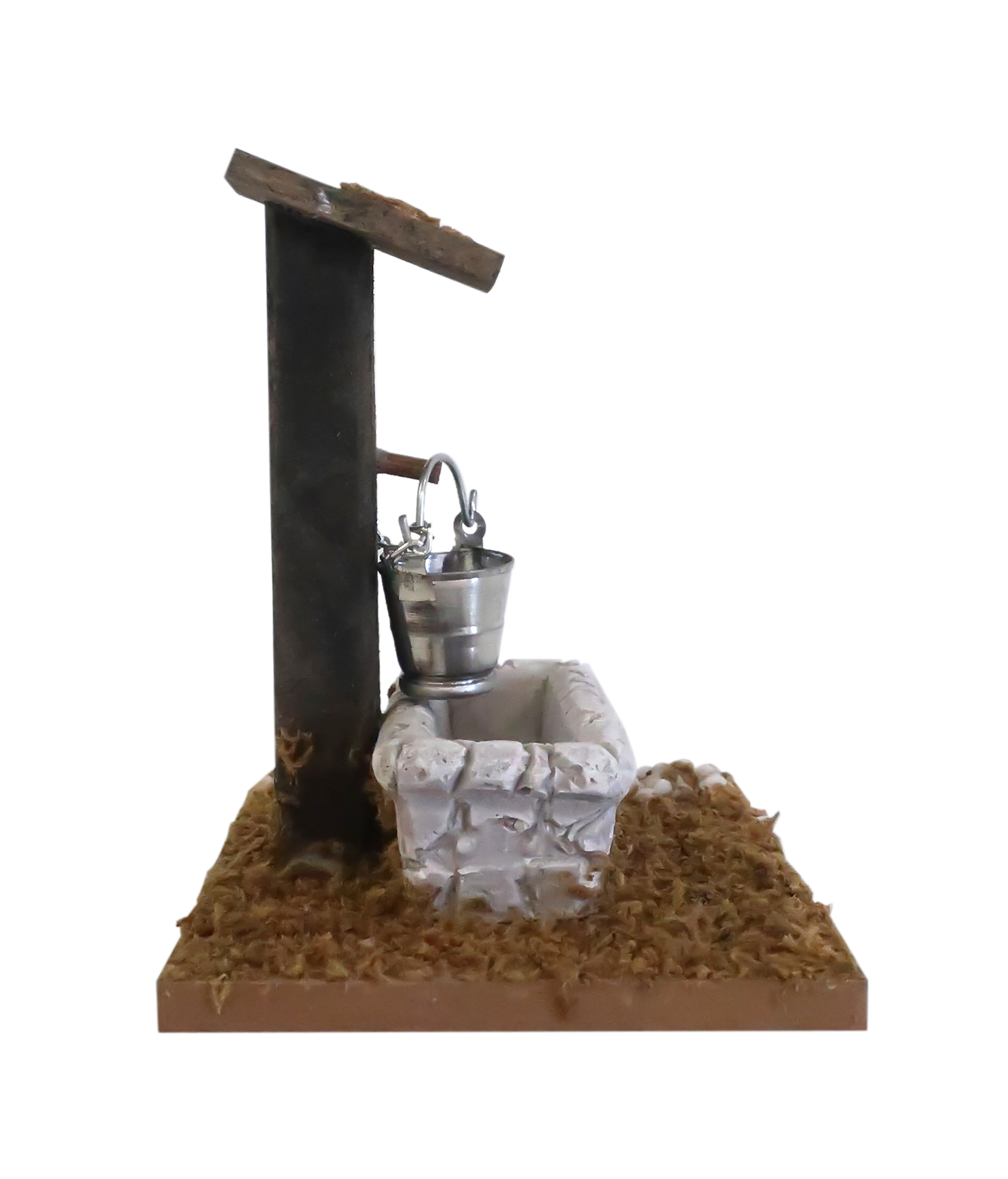 Accessori per presepe: Abbeveratoio/Fontana in gesso con secchio.