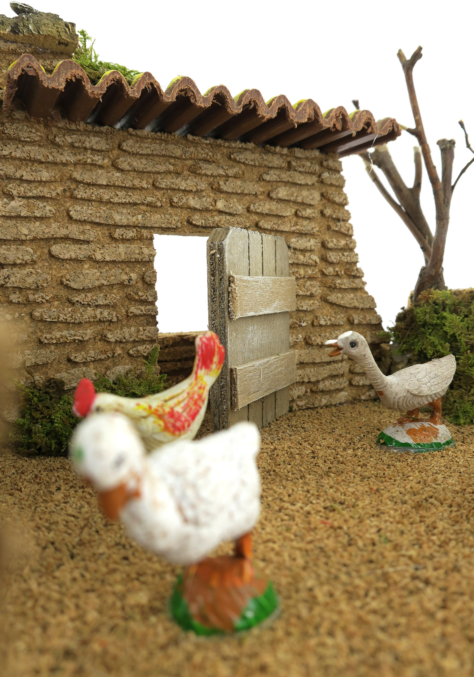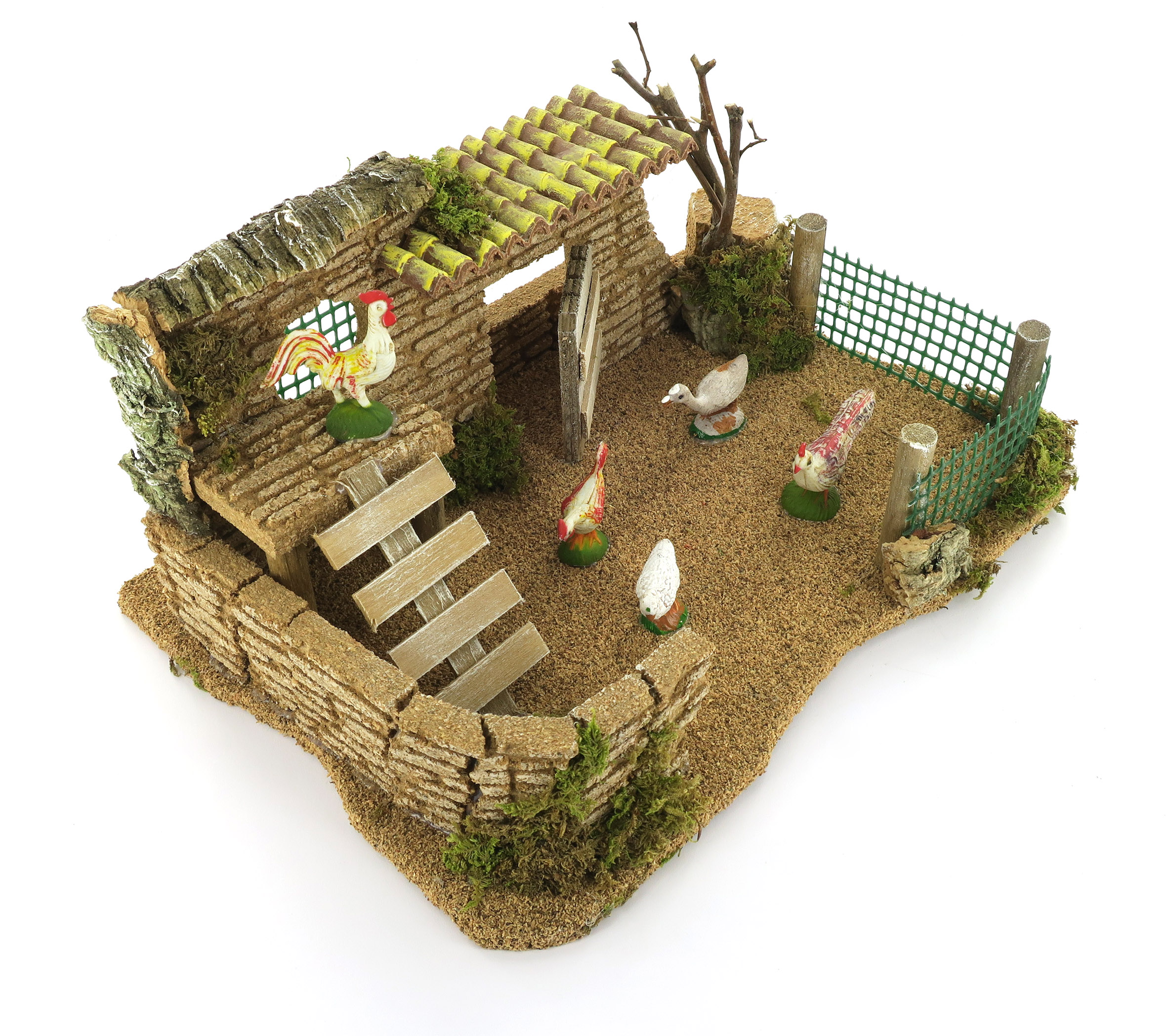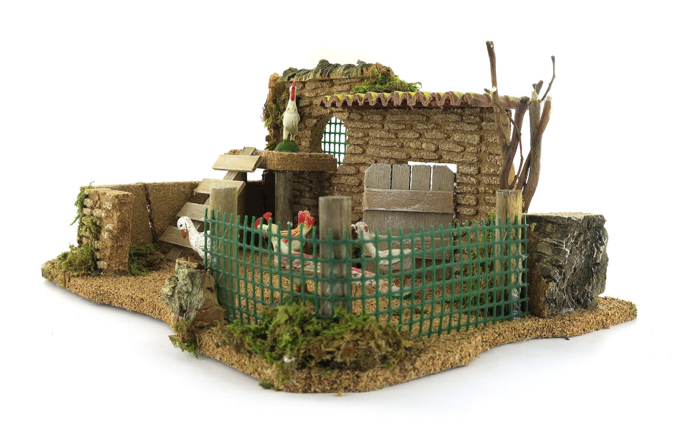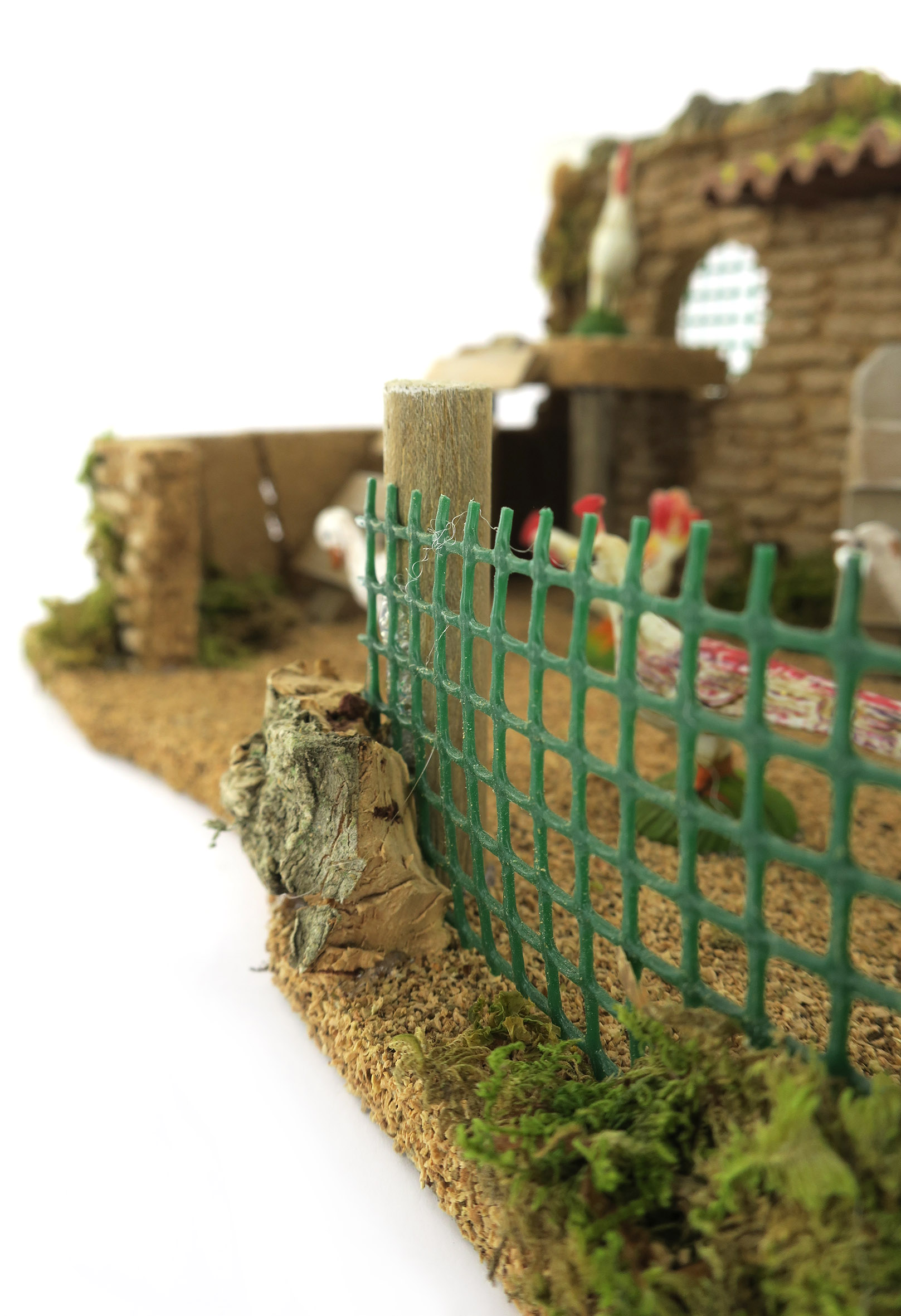 Accessorio per presepe, ricco di dettagli e colore; si tratta di un grazioso angolo di fattoria con recinto e galline, ideale per completare l'ambientazione del vostro presepio. Ottimo per dare un tocco agreste al vostro presepe natalizio, questo complemento per presepe artigianale risulta perfetto per presepi dove è presente una zona rurale, con cascine e animali da cortile. La collezione comprende anche altri elementi altamente decorativi per presepe, come angoli con falò, carriole, carretti e altri elementi di campagna.