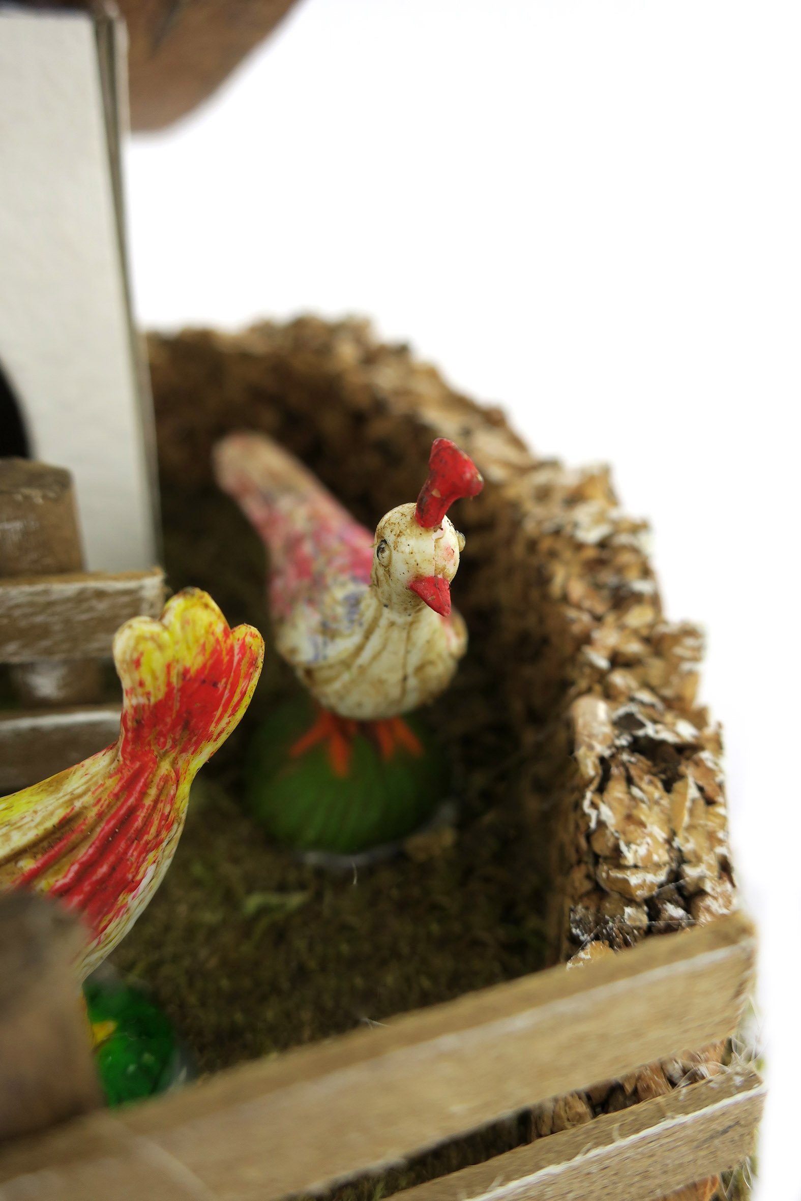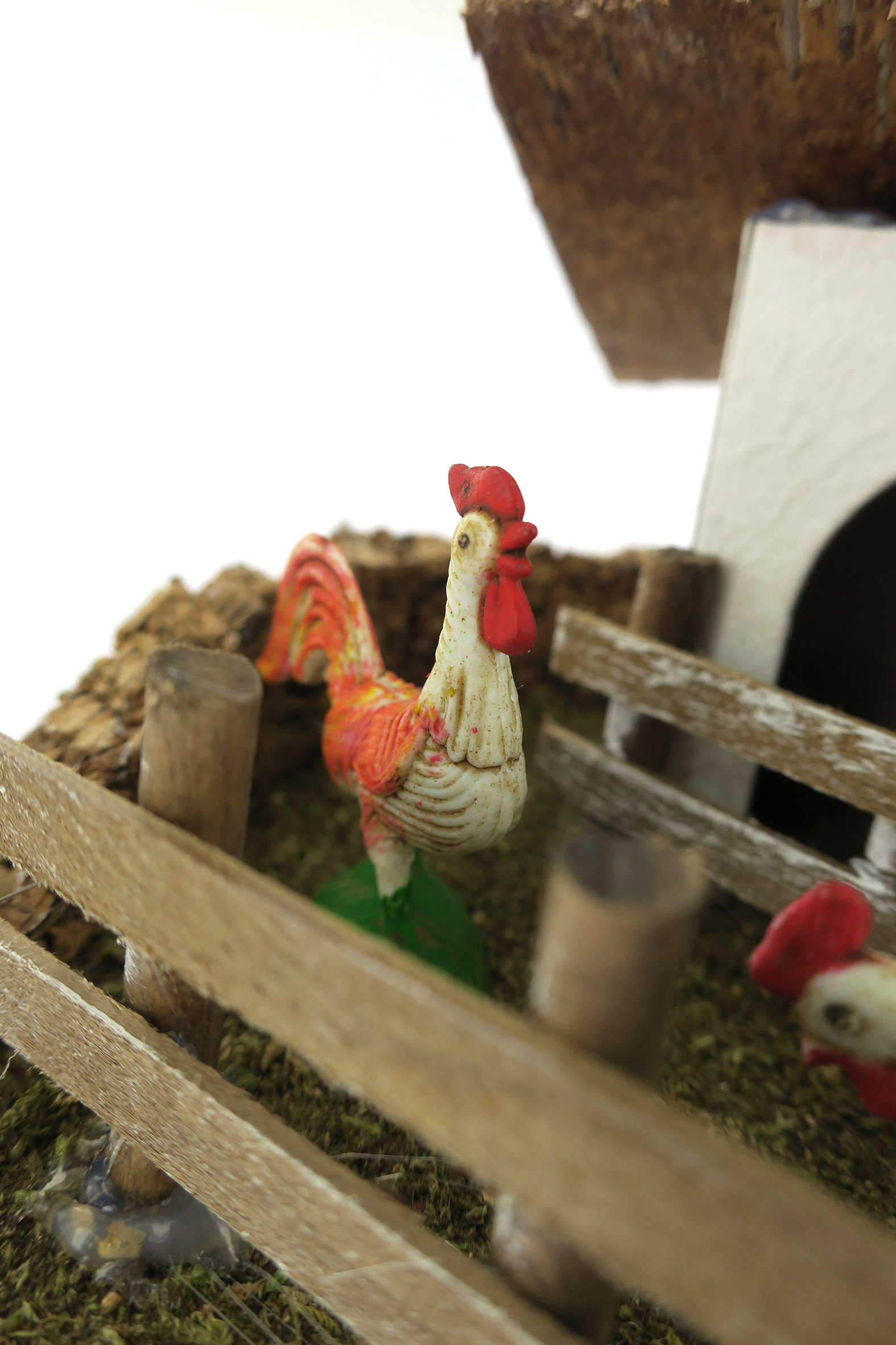 Pollaio in Miniatura per Presepe, Pollaio con Galline in Miniatura per Presepe, Ricostruzione di Aia per Natività , Plastica e Legno, Multicolore, 16 x 13 x 7 Cm