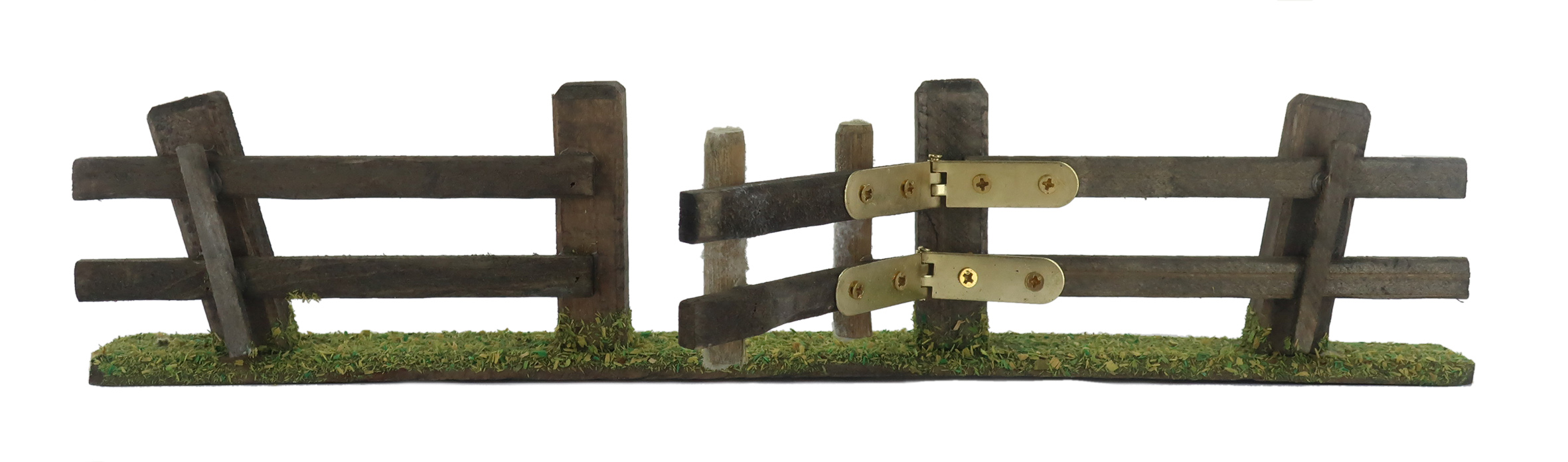 Accessori per presepe: Staccionata Con Cancello. Dimensioni: 30 x 3 x 7 cm. Materiale: legno. Realizzato artigianalmente in Italia.