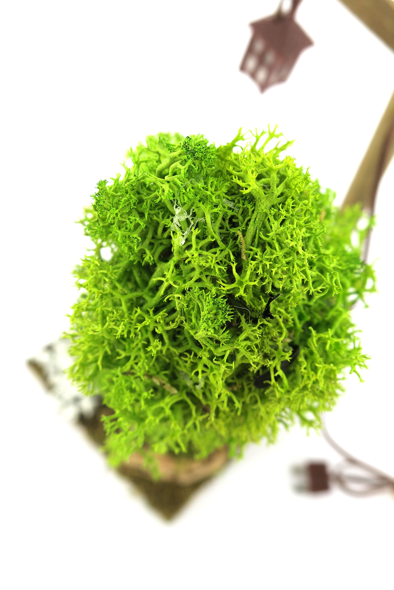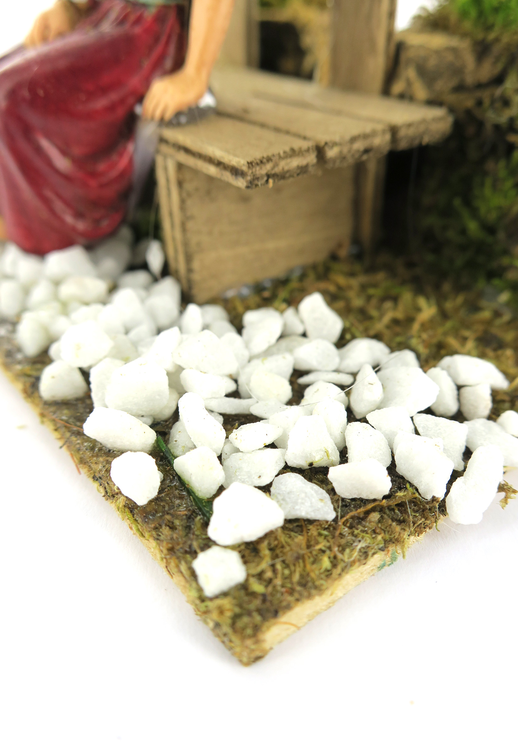 Materiali: Legno, sughero, muschio, lichene e ghiaia. La statuina è in plastica.