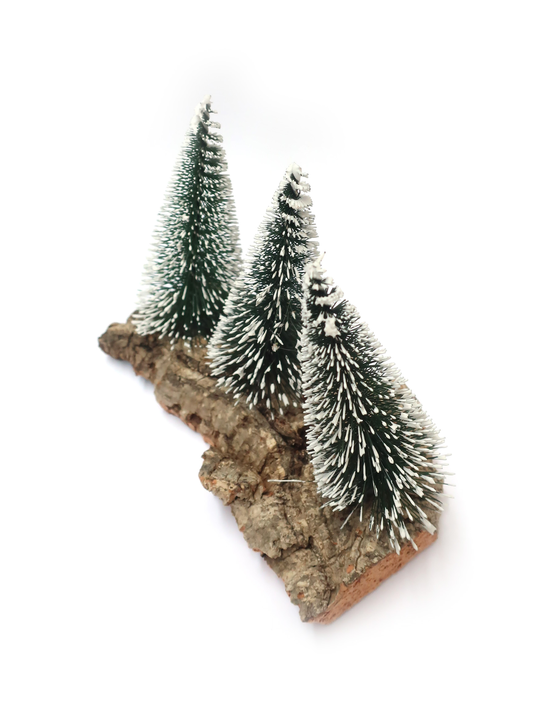 Accessori per presepe: 3 Pini da 12 cm sulla roccia. Realizzato artigianalmente in Italia.
