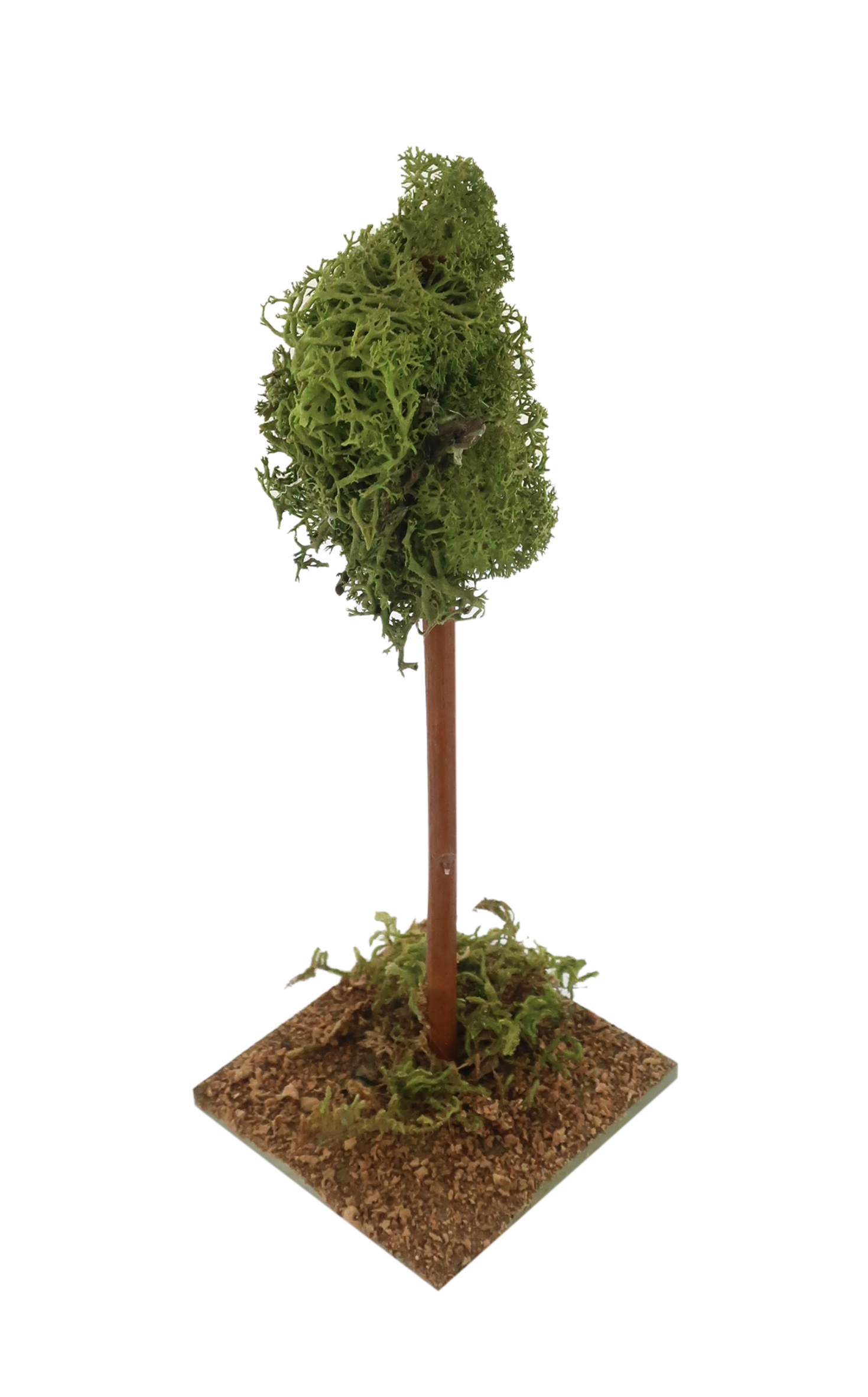 Accessori per presepe: Albero per presepe a tronco fatto di legno, stretto e lungo, con chioma in lichene. Grazie alla base in legno, l'alberello per presepe risulta molto stabile e adattabile a una vasta gamma di ambientazioni per presepe.