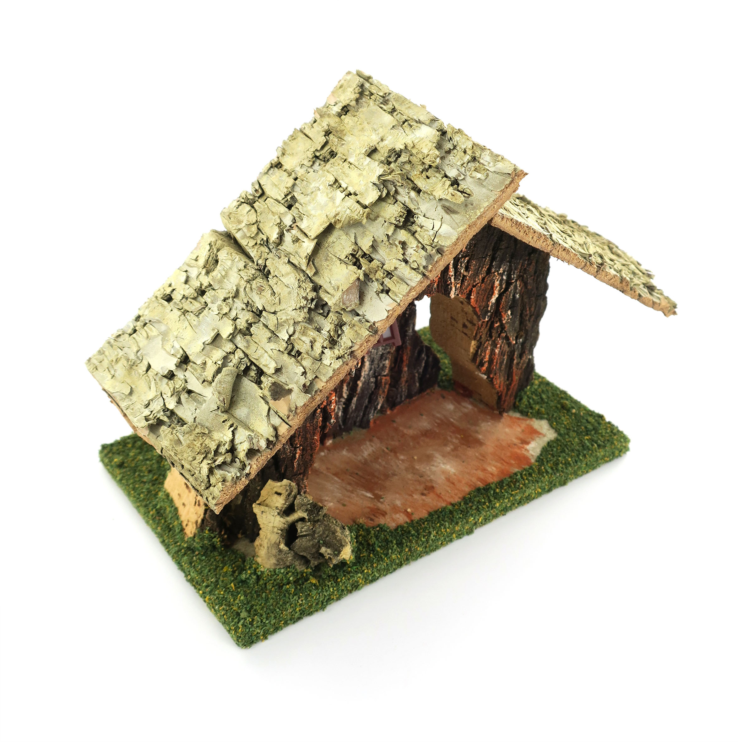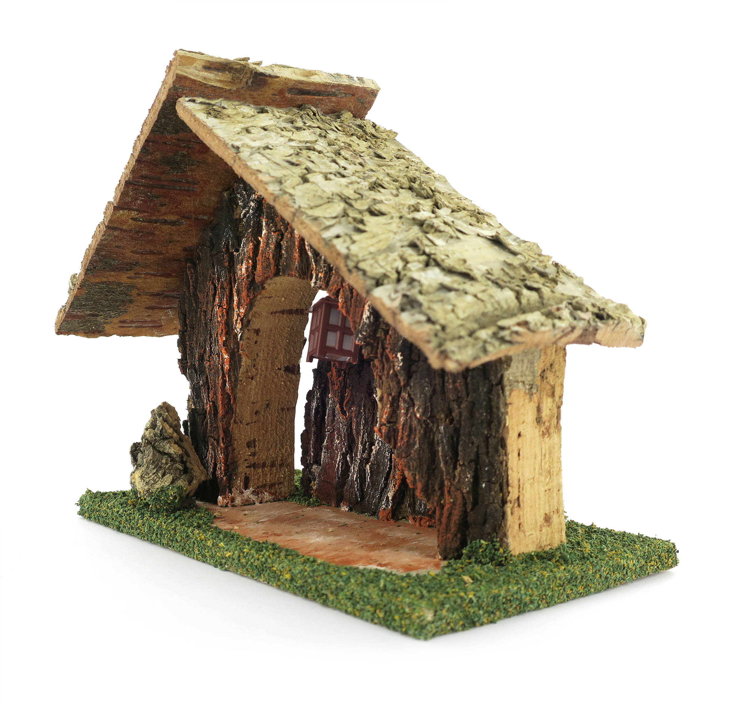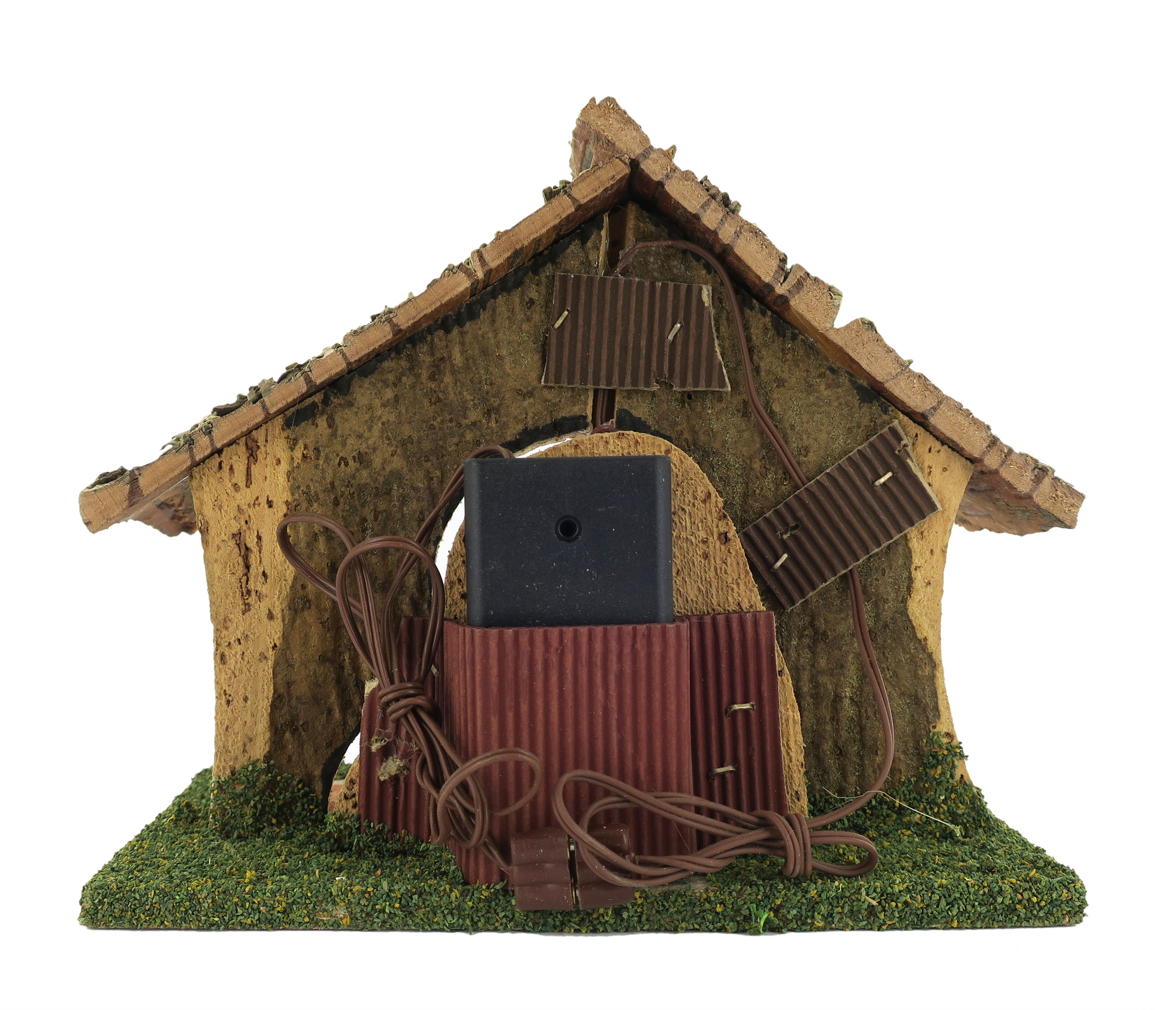 Capanna con Lanterna Alimentata a Batterie, Presepe Bertoni, Sughero/Legno/Resina, 16x10x14 Centimetri