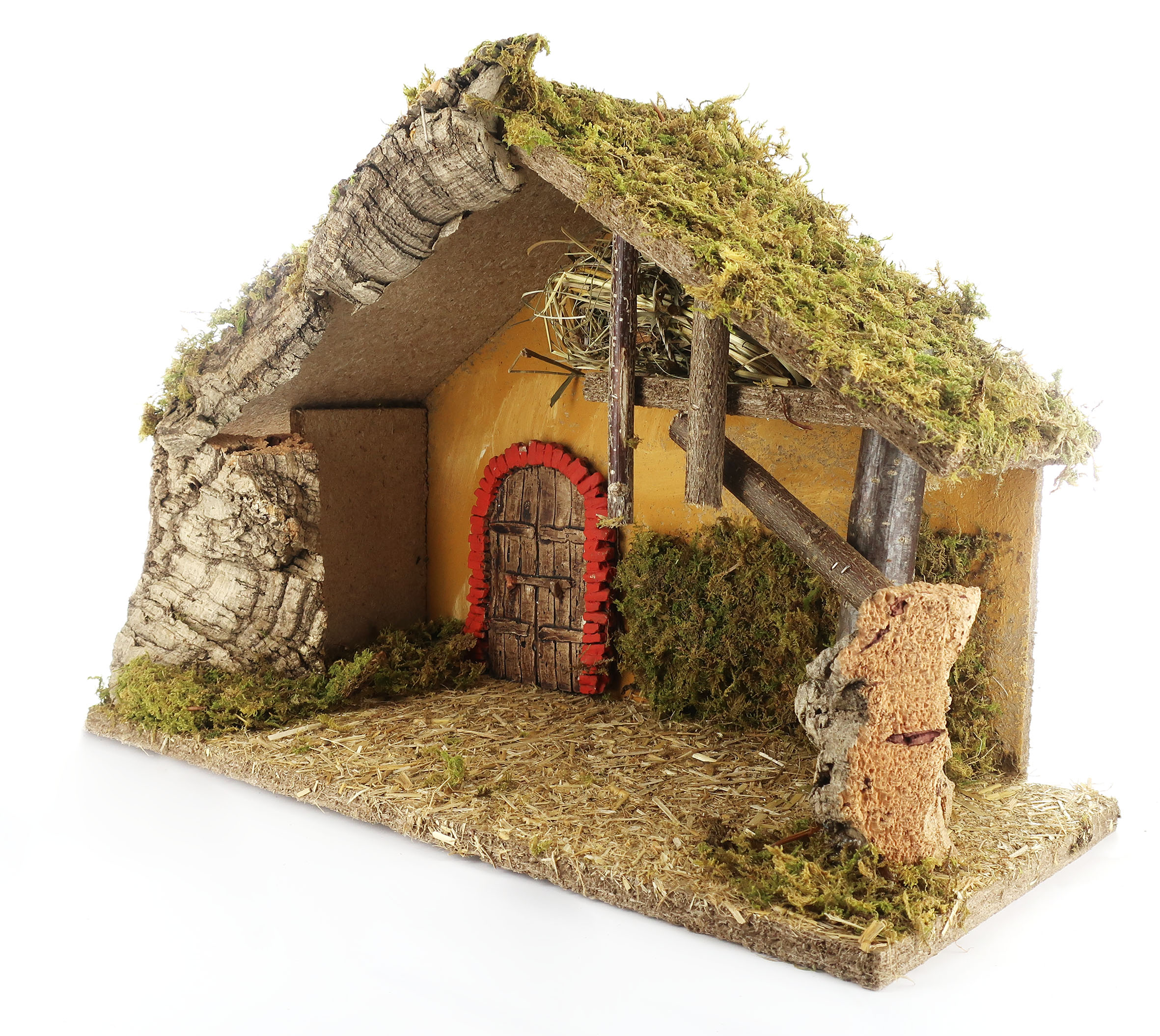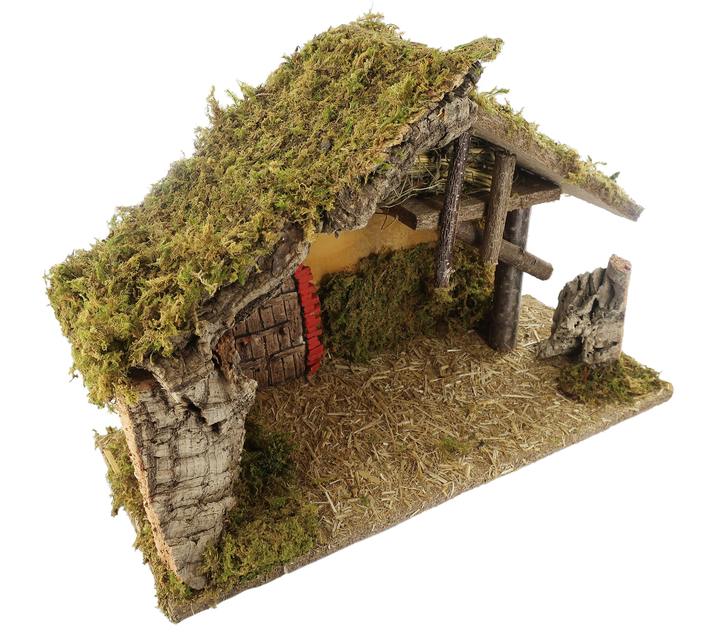 Capanna vuota, ideale per statuine da 10/12 cm. Altre caratteristiche: porta in gesso. Dimensioni: 42 x 18 x 28 cm. Materiali: Legno, Sughero e Muschio. Realizzato artigianalmente in Italia
