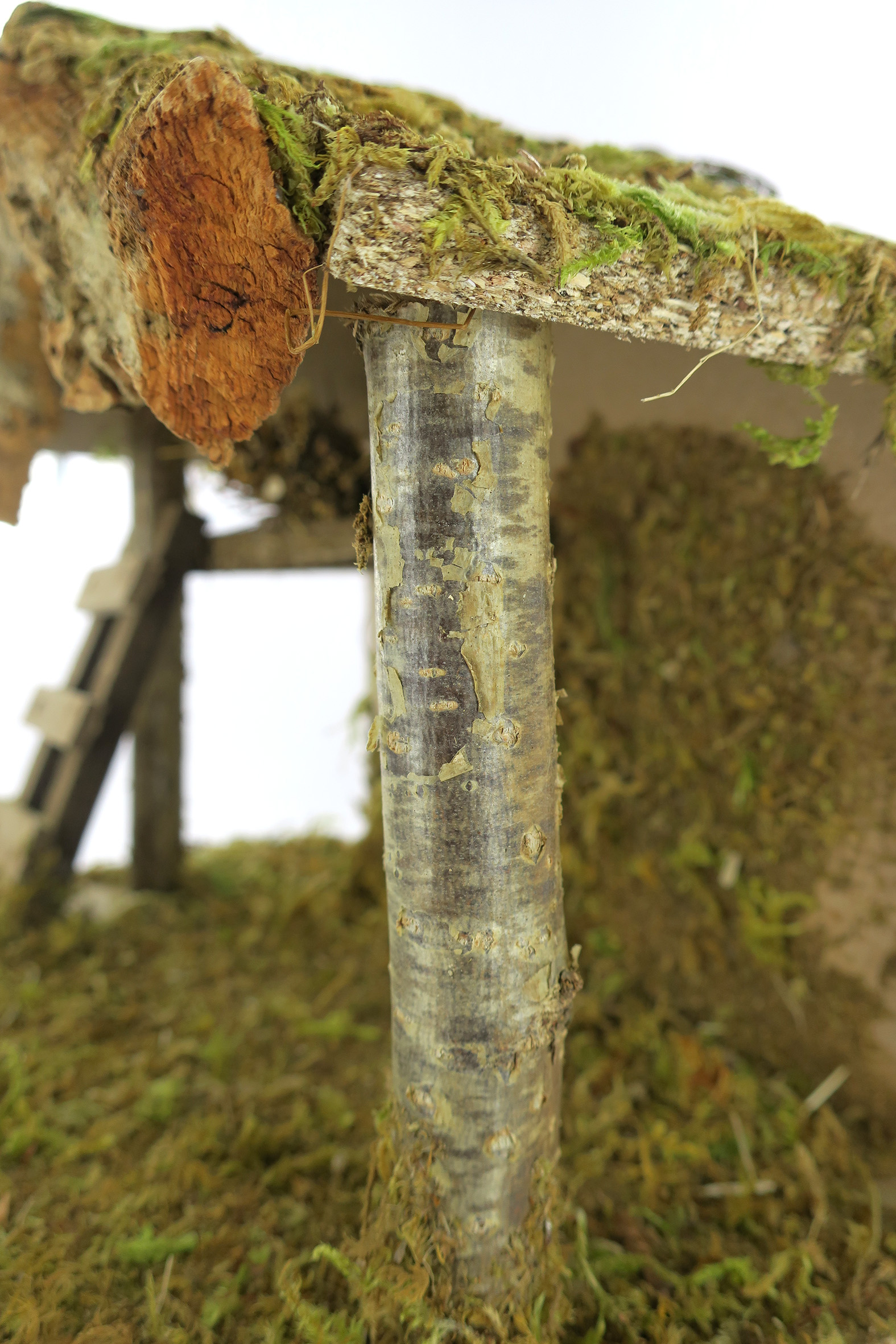 Capanna vuota, ideale per statuine da 6/7 cm. Vanta una scala a pioli che porta a un piccolo fienile nel sottotetto. Dimensioni: 24 x 14 x 20 cm. Materiale: Legno, Sughero e Muschio. Realizzato artigianalmente in Italia.