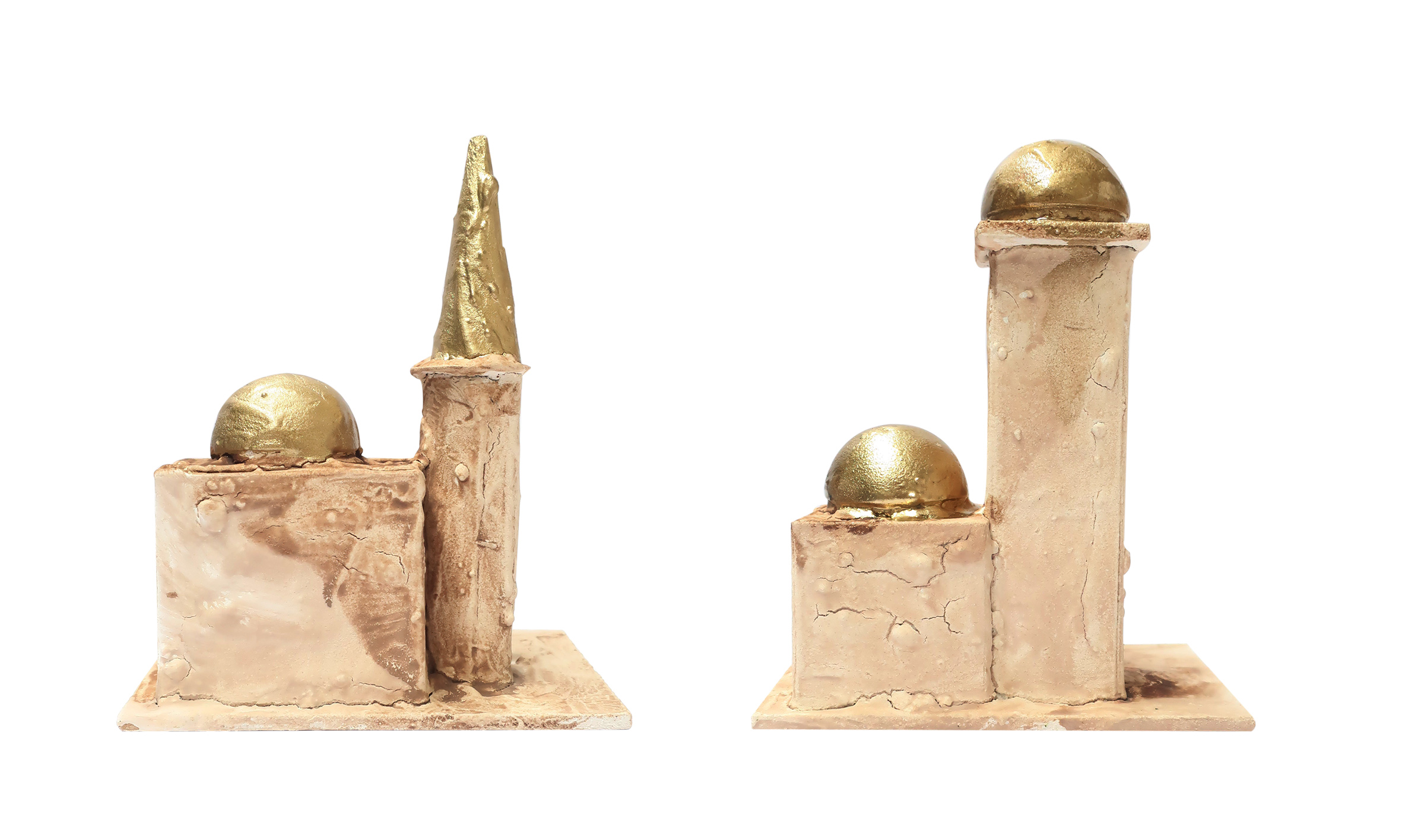 Accessori per presepe: Casette arabe (2 soggetti). Dimensioni: 12 x 7 x 9 cm. Realizzato artigianalmente in Italia.